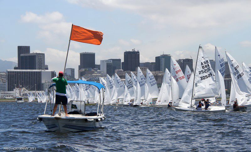 Rio de Janeiro, January 25-27, 2013 - Junior Nationals Rio de Janeiro, January 29 - February 3, 2013 - Senior Nationals Report by Dante Bianchi (Photo courtesy Fred Hoffmann) It was a great regatta, but certainly a lot of work for the organizers: Fernando Madureira (captain of the flotilla 159) and Ricardo Lobato together with me and the Yacht Club of Rio de Janeiro sailing secretary. With no doubt it was very enjoyable for everyone. By suggestion of the sailors, this year for the first time we did a Brazilian Junior championship, separate from the "general". It was such a success it stole sailors from the Laser and OPT classes - all championships were at the same time.
