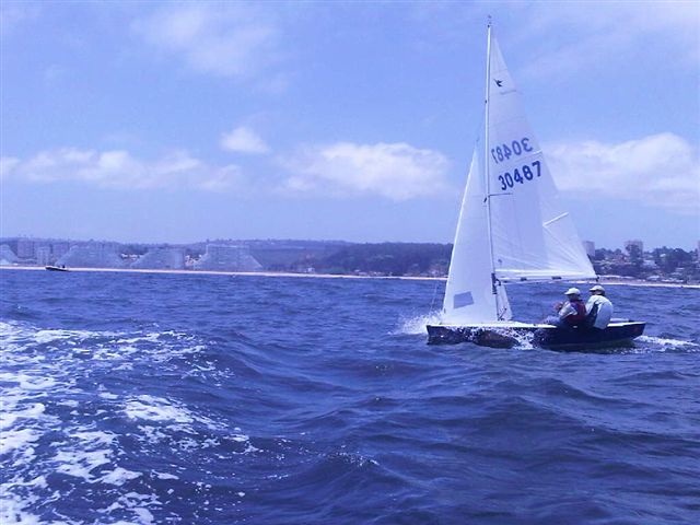 Sunday 13 the day was extremly calm and cloudy, but during the afternoon it became clearer and a light breeze from the West close to the shore pushed the fleet to the course. Wind increased to 6-8 Kts and made possible to race two exciting regatas both won by Marcos Fuentes and his wife Carolina Vergara, finishing first in the championship. Poncell could only make a 5 and a 6 finishing second overall.