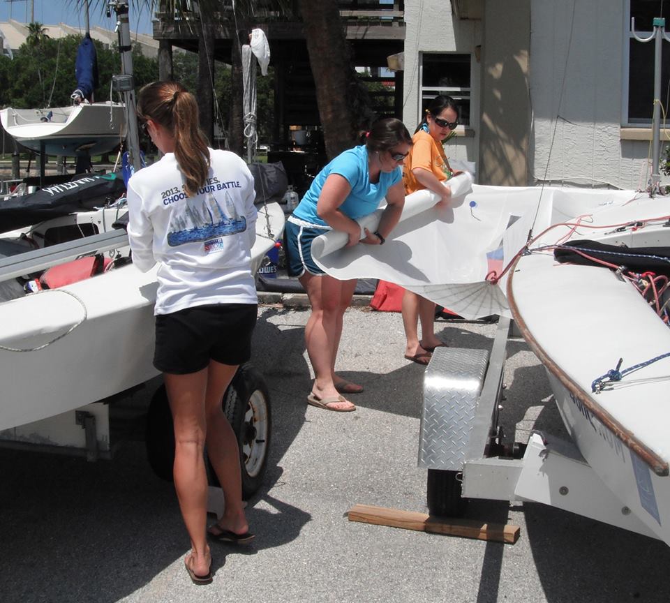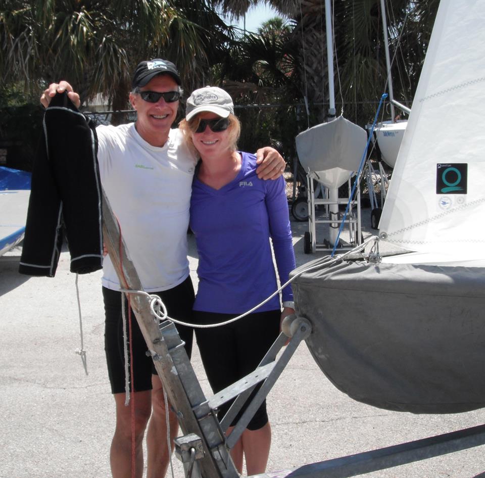 The District 4 (Southeastern) US Championships were first held in 1957. This year, the regatta was in St. Petersburg, Florida. Saturday saw light and tricky racing with a sea breeze in the afternoon. On Sunday, races were cancelled with no wind. Kevin and Ashley Reali won. There were a number of new sailors and juniors participating along with the veterans. The fleet was competitive and tightly packed on almost every leg. A good time was had by all!