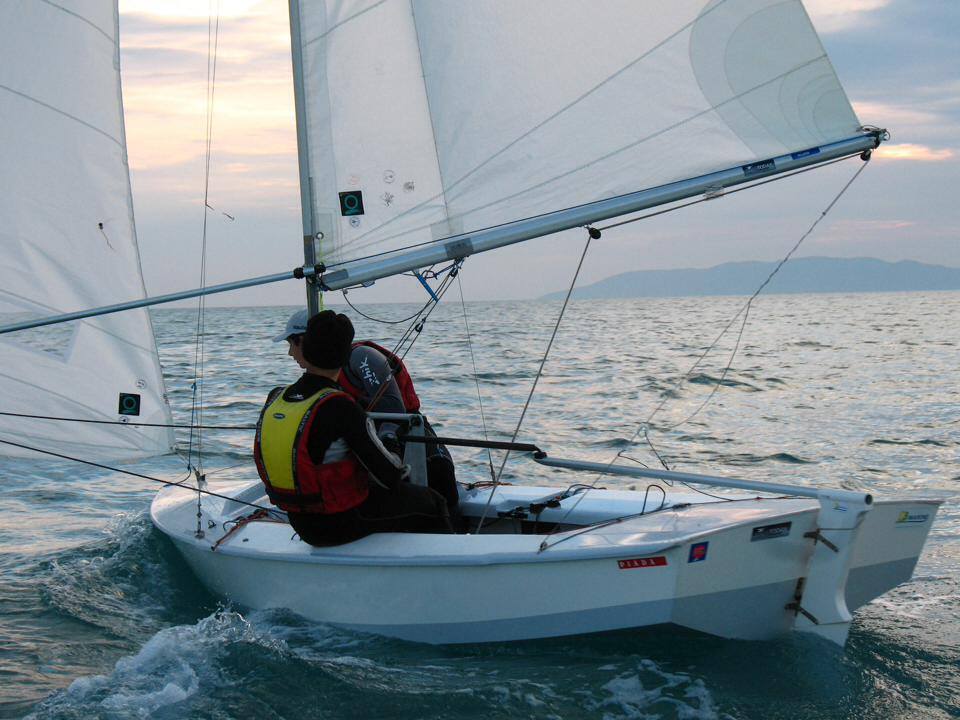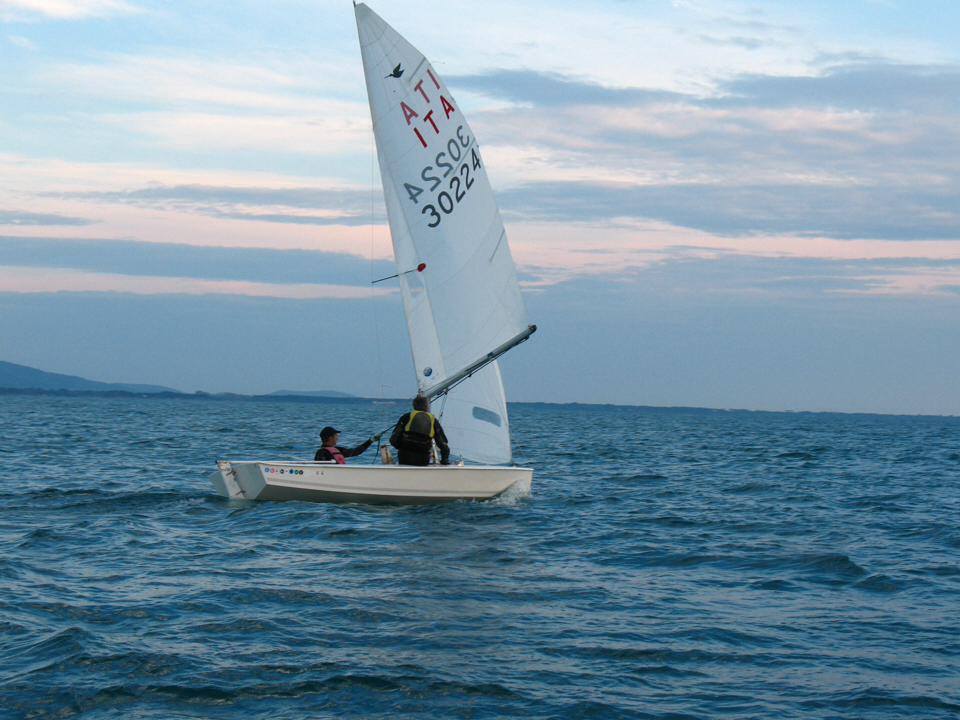 On Saturday the Race Committee worked hard and well for setting the race course, with the wind that shifted initially from NE, then N and at the end from North East again. The first race was won by Pietro Fantoni with the junior Michele Meotto. For the second race Michele became skipper, but he had to surrender to the expert team of Mauro Maurizi and Marco Romani. The third race was won again by Fantoni-Meotto.