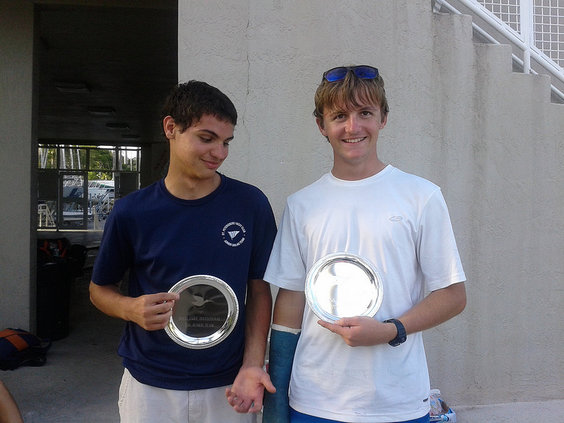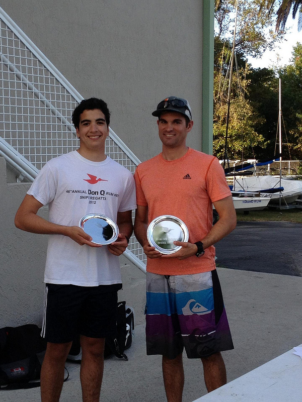 narrowly beat the 2nd place team of Mitch Hall (College of Charleston Coach) and Nicole Popp who posted an impressive three bullets on Sunday. Recent University of Miami graduate David Hernandez with local crew, Pere Puig, finished in third. The award for the highest placing new team went to Canadian National Development Team member Rob Davis and his crew Natalya Doris (Miami,FL). The top placing junior team was 2012 Smythe Winner, Addison Hackstaff sailing with Alex Voce, and the top women’s team prize went to Charlie Bess & Kristen Walker who recently represented the USA at the 2012 Women’s Snipe Worlds in Spain.