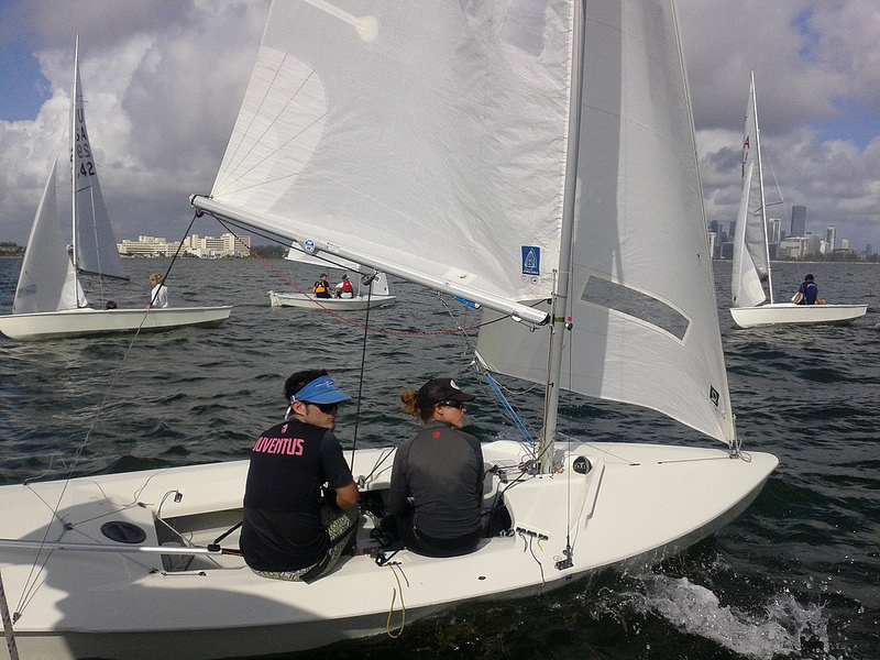 Miami, January 3-6, 2013. Report by Kathleen Tocke and a lot of photos! Eckerd College Coach Kevin Reali and Ashley Reali were proclaimed the winners of the 2nd Annual Miami Snipe Invitational. The Reali’snarrowly beat the 2nd place team of Mitch Hall (College of Charleston Coach) and Nicole Popp who posted an impressive three bullets on Sunday. Recent University of Miami graduate David Hernandez with local crew, Pere Puig, finished in third. The award for the highest placing new team went to Canadian National Development Team member Rob Davis and his crew Natalya Doris (Miami,FL). The top placing junior team was 2012 Smythe Winner, Addison Hackstaff sailing with Alex Voce, and the top women’s team prize went to Charlie Bess & Kristen Walker who recently represented the USA at the 2012 Women’s Snipe Worlds in Spain.