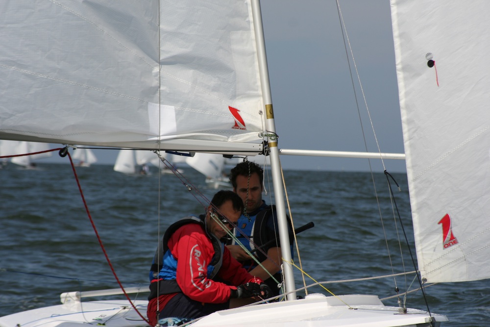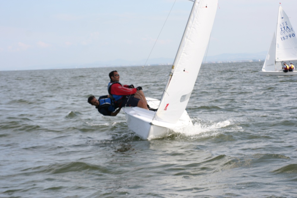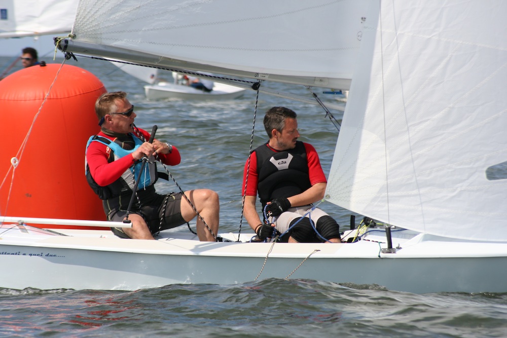 A total of six races (out of seven scheduled) were domainated by the currently best Italian team, Enrico Solerio and Sergio Simonetti. They enjoyed five wins due to good speed and masterful interpretation of the difficult sailing area. Paolo Lambertenghi and Marco Rinaldi endend in second place, fast and consistent, ahead of Francesco Granchi and Marco Rinaldi from Tuscany, on the podium, who also showed high skills. The team of Pietro Fantoni and Nicola Gerin, finished fourth; they took a clear victory on the first race of the series, but then were a little bit inconsistent in the other races, preceding Fabio and Daniela Rochelli (a.k.a. the “Rockets”), who won the first edition of the regatta in 2007. Stefano Marchetti and Paolo Sangiorgi, newcomers to the class, but good and fast upwind, showed a good performance, while Enrico Michel and Stefano Longhi ended in seventh place, maybe because they tried new settings on their boats. Filippo Perdisa and Ermanno Massini were also in evidence, finishing in in eighth place overall with a third as their best result.