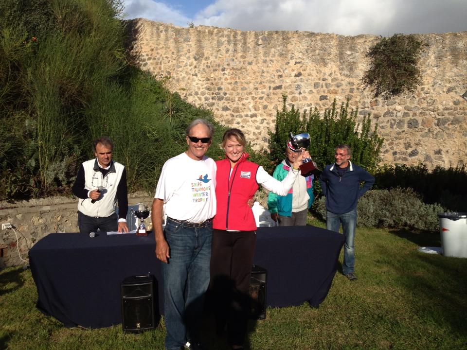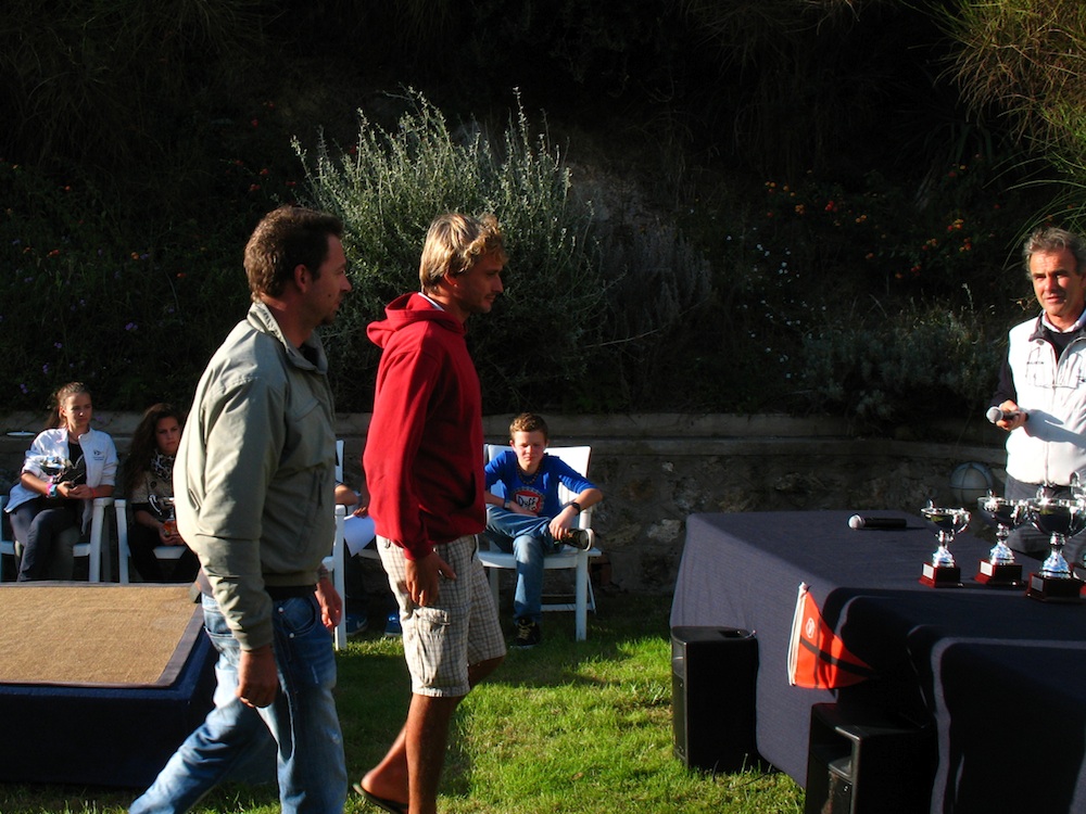 Day three of the Winter Trophy brought winds 18 – 23 knots and big waves. However, due to the size and crazy nature of the waves at the harbor entance, the AP flag was flown. Despite the flag, Enrico and Sergio showed their skill sailing in the awesome conditions to a crowd of sailors watching from the city walls. Due to concerns for safety, the RC cancelled racing for the day. Another wonderful meal was served to the sailors at the Prize Giving . The team of Fantoni & Cerni finished the regatta in first, Diaz & Tocke in second, and last years winners, Solerio and Simonetti in third. An impressive finish of fifth place went to Francesco Granchi (Pietrobianca) & Valerio Gavazzi (Rosignano Solvay) who are new to the Class.