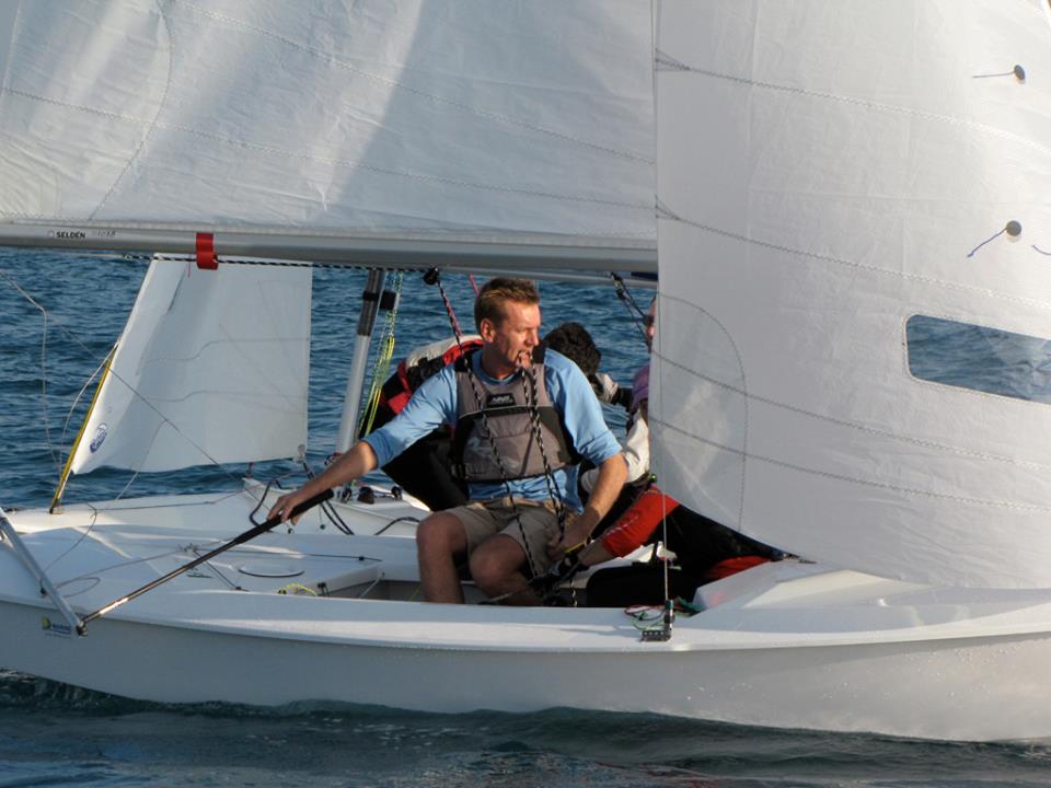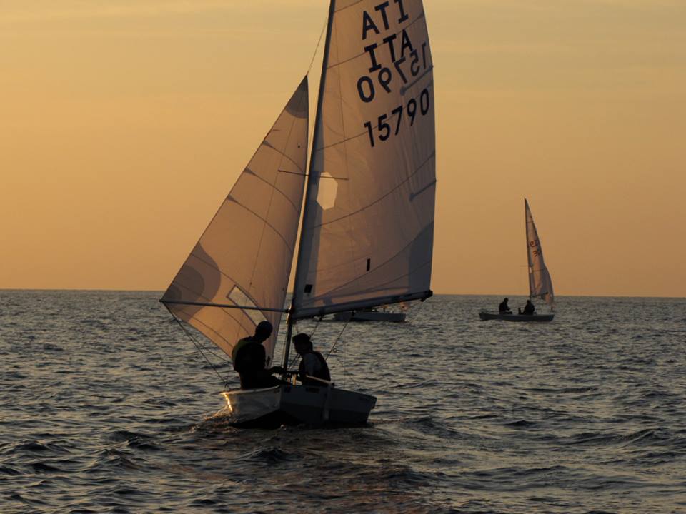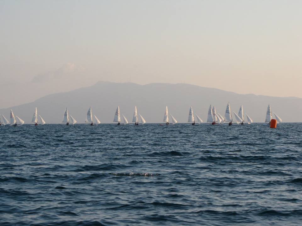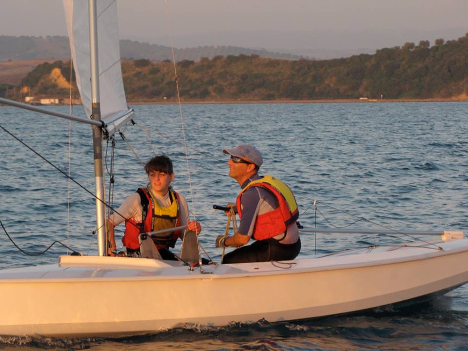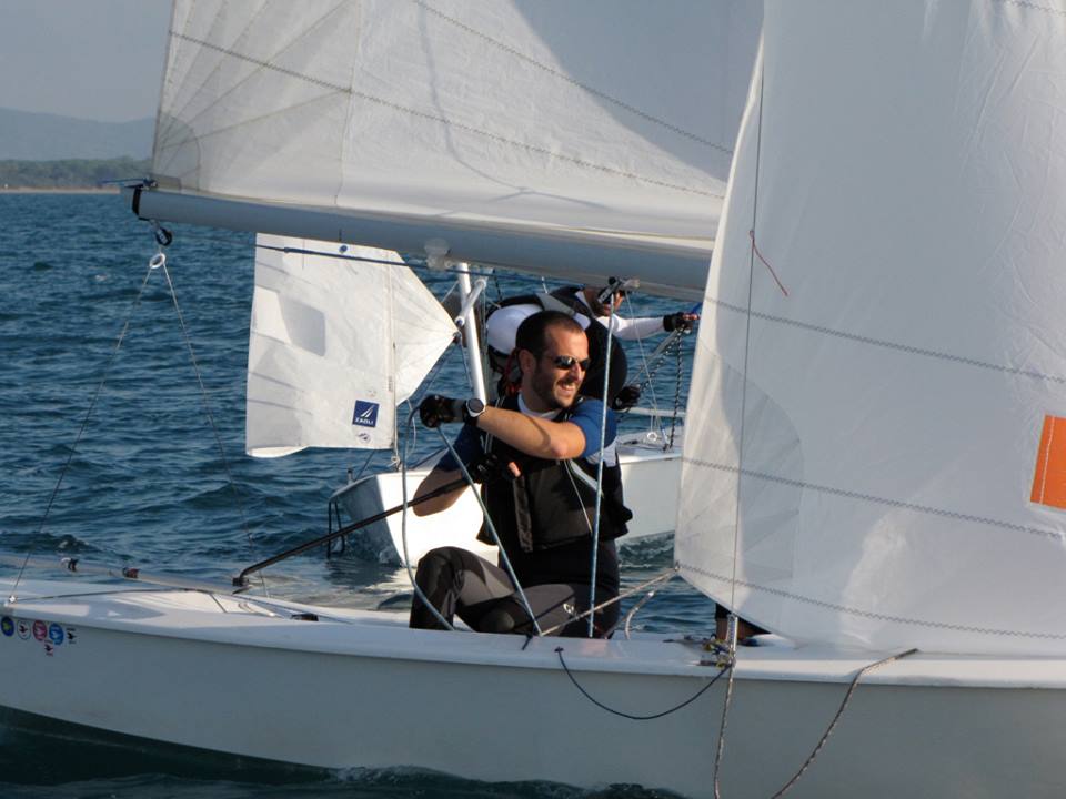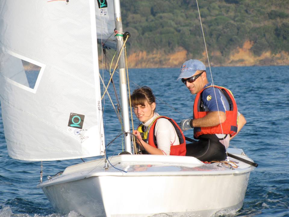 Unlike the cold temperature last year, sailors sailed the first two days in lycras under the warm Tuscan sun. On day one, three races were sailed in 4-7 knots of breeze and flat water. Pietro Fantoni (Moruzzo) and Laura Cerni (Trieste) displayed incredible speed , particularly in the downwinds. Pietro and Laura won the first two races of the day and Enrico Solerio and Sergio Simonetti finally showed their true speed to win the last race. Super Crew Daniela Semec (Trieste) and her fabulous skipper Fabio (Trieste) also had an excellent first day with two seconds.
