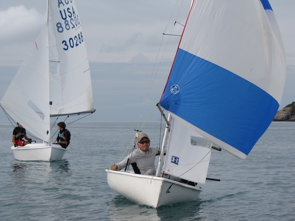 Sailors awoke day two to glassy waters and an AP flag. By the late afternoon, the Race Committee ushered the fleet to the water. Sailors waited on the water with the Equipe and D-One fleets. Augie and Kathleen traded their Snipe with a young team sailing the junior Equipe boat and even Race Committee Chair Alessandro Testa switched into a Snipe to sail for a bit. Winds arrived late, but the Committee was able to run one race in light breeze. The race was won by Diaz and Tocke.