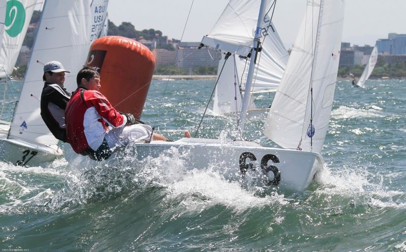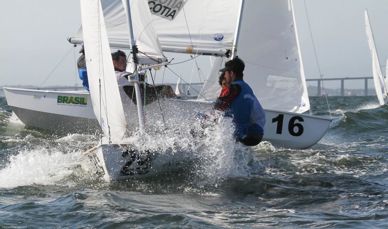 Rio de Janeiro, September 28, 2013. Bruno Bethlem and Dante Dante win the Snipe World Championship in their home water in Rio. 1. BRA Bruno Bethlem & Dante Binchi 2. BRA Mario Urban & Rafael Sapucaia 3. BRA Alexandre Paradeda & Gabrile Kieling 4. BRA Alexandre Tinoco & Matheus Goncalves 5. ARG Luis Soubie & Diego Lipszyc 6. BRA Rafael Gagliotti & Henrique Wsniewski 7. BRA Mateus Tavares & Daniel Claro 8. BRA Mario de Jesus jr & Anderson Brandao 9. ESP Raul Valenzuela Santaella & Antolin Ona 10. BRA Henrique Haddad & Rodrigo Lins Full results and regatta report by Don Bedford The final day of the Snipe World Championship began with a SW wind of about 15 knots. The swell was big through the channel providing good surfing conditions. A flood tide helped get the race off on the first try and after the first lap it was very tight racing. Around the last leeward mark, runo Bethlem and Dante Bianchi of BRA pulled into a 15 second lead over the fleet and held their lead to the finish.