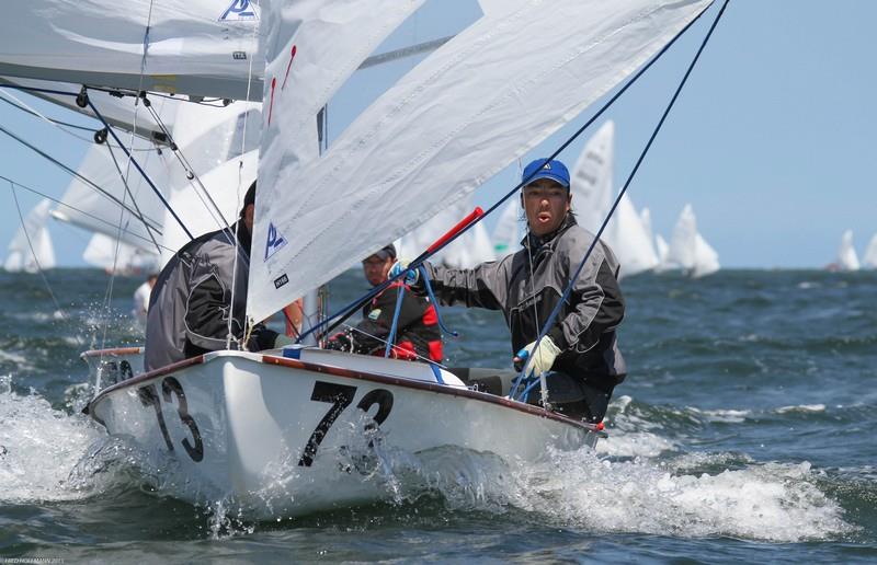 The prep flag went up just after 3:15 and the ebbing tide helped to push the starters over the line and force a recall. The Z flag was raised and there was only time for one more try. The starters lined up fairly evenly over the line and with just a few feet to spare the start was clean and race 10 was underway saling an Olympic course. Popping out ahead at the first mark was Brian Kamilar and Enrique Quitero of USA that extended to a 20 second lead at the leeward mark. That lead was swallowed up on the run to the leeward mark and the top 3 boats rounded right together with Paradeda just a nose ahead of Rodriquez and then Kamilar. The wind was dropping to around 12 knots at the bottom of the course but still good pressure at the top. The leaders split and Kamilar took far right and winning the last race of the Worlds Rodriguez/Lavie finishing second. Third was Alexandre Paradeda and Gabriel Kieling. Finishing 12th with a very consistent series was Bruno Bethlem and Dante Bianchi of Brasil winning the 2013 Snipe World Championship.