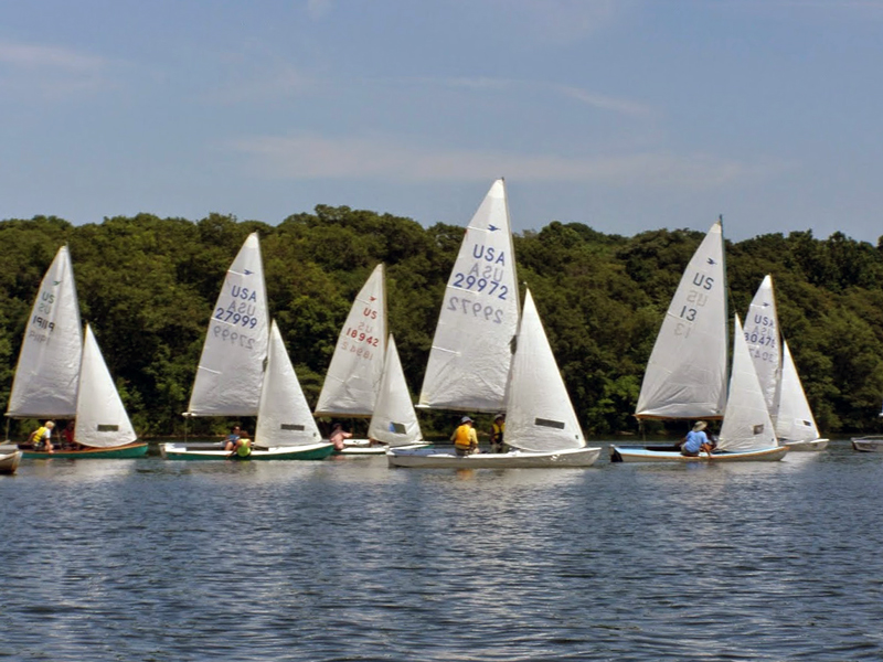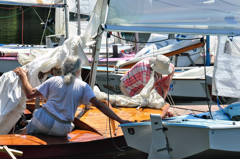 25 boats, including 3 classic Snipes, fit in five races over two days on the famous Mystic Lake, a small puddle northwest of Boston with a big Snipe history. But the racing wasn’t really the big story of this particular weekend: that honor goes to the “first ever” achievement of having a boat representing every Snipe decade in attendance.