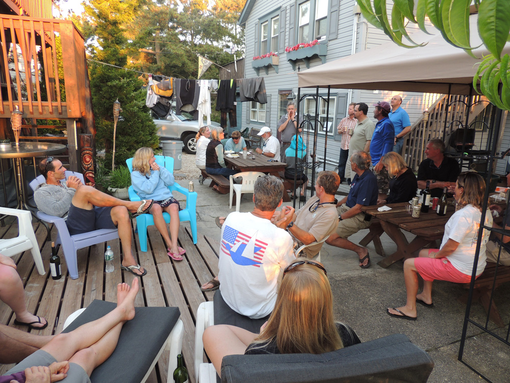 17 Snipes flew in from across the country for the Atlantic Coast Championship in the beach town of Surf City, NJ. The regatta was officially run out of the Surf City Yacht Club, but its true heart was at the house of Lee and Karla Griffith a few blocks away. With homemade dinners every night and enough housing for the entire regatta, there was no need to go anywhere else.