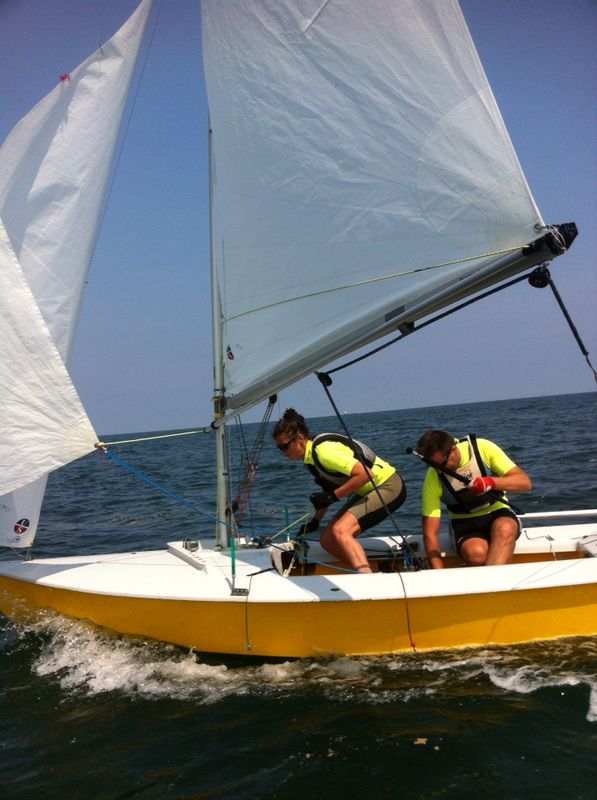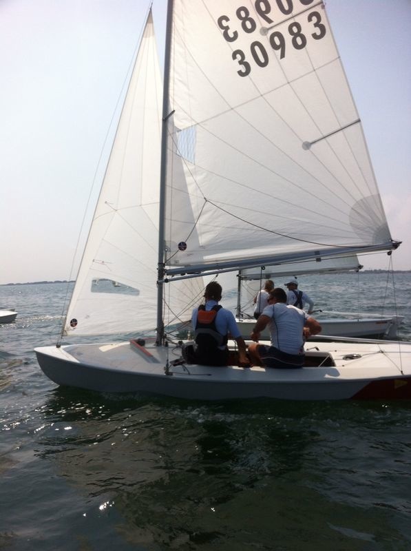 On Sunday the weather allowed for 3 races in light winds. Every race was won by a different team and the final standings show 4 teams only 2 points apart.