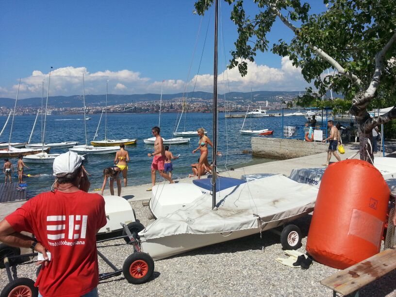 Arrivati a Muggia abbiamo ormeggiato gli snipe, alcuni utilizzando la deriva come ancora, e godendoci un meritato bagno siamo sbarcati al circolo dove ci aspettavano una fantastica pastasciutta, birra e spritz.