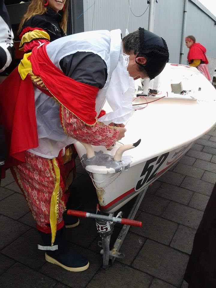 Today we had a bit of rain but stopped very soon. Good sailing with nice costumes and good wind. Spike was the fastest on the course, as you can watch on the video.
