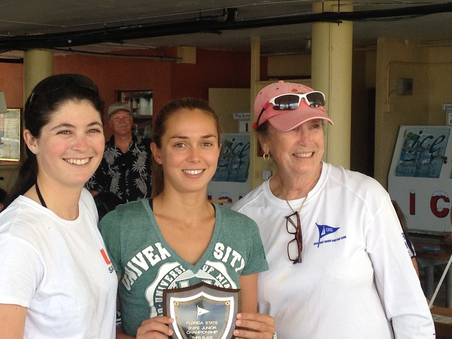 Miami, September 6-7, 2014. Report by Gonzalo "Old Man" Diaz 2014 (58th Annual) Florida State Snipe Junior Championship The Florida State Junior Championship started in 1957 with Ken Lippincott winning it at Coconut Grove Sailing Club. He won again at Eau Gallie in 1958. Among the Early winners we can see: 1959 Charles Morris,1960 Bruce Cochran, 1961 Dan Brown, 1964 Fred Bremen, Jr., 1965 Tom Bremen, 1967 David Albury, 1968 Augie Diaz. to mention some. This Championship was moved around Florida, but right after 1968 the Miami Yacht Club took over holding this regatta and a year later Coconut Grove Sailing Club took over and from then on to today our Club together with the Miami Snipe Fleet have been sponsoring the Florida State Snipe Junior Championship. Jensen McTighe with crew Dae Kelly won the Championship this year. Jensen and Dae sailed the first 4 races on Saturday without a pole (broke the pole before the first race) I wished we had filmed some of the downwind finishes with Jensen without a pole trying to hold second place from passing him and he was very successful!! (see the results). On Saturday the RC set windward leeward courses with winds 10 mph clocking from approximately 125 degrees and on. Similar conditions on Sunday but with a little more wind. The Race Committee was able to complete the scheduled 6 races with one throw out. ...