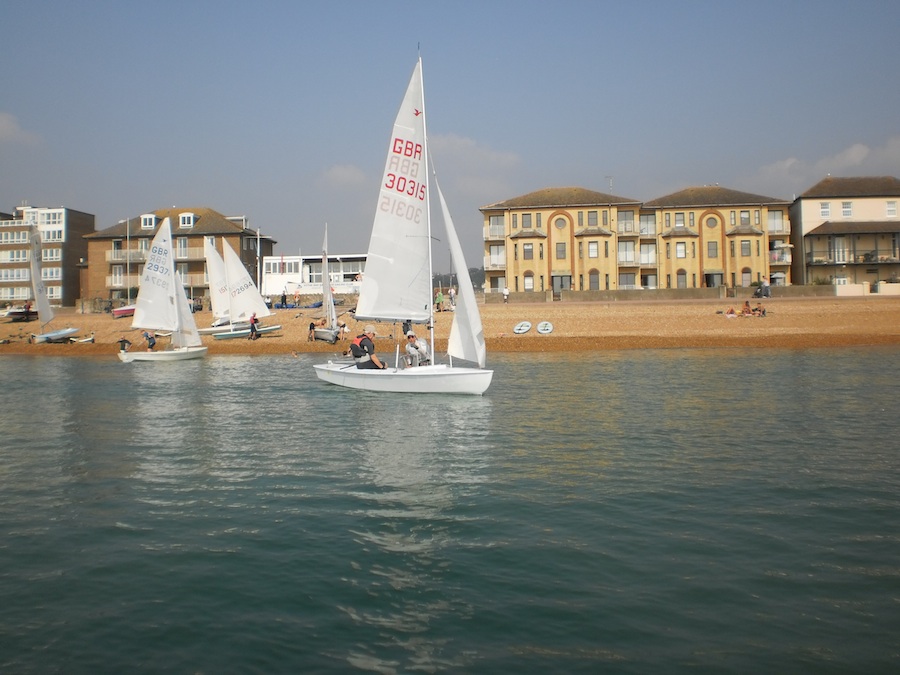 The competitors were very fortunate with warm sunshine on both days which made being at the seaside a joy. Very light winds were forecast but a small sea breeze meant racing was still was able to take place close to the beach with all 8 boats enjoying excellent close racing.