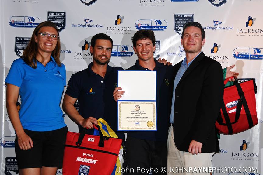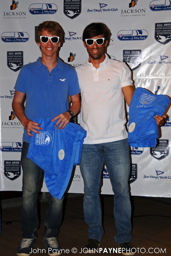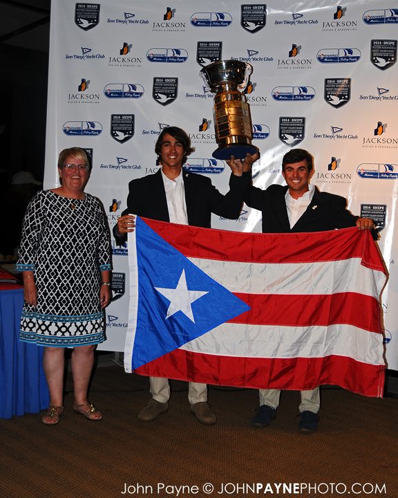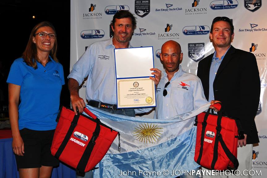 San Diego, September 12, 2014. Regatta report by Carol Cronin (Photo: Raul Rios & Fernando Menllor - courtesy of John Payne) Final results (10 races, 2 discards) 1. PUR Raul Rios & Fernando Monllor, 30 2. ARG Luis Soubie & Diego Mini Lipszyc, 31 3. BRA Breno Bianchi & Flavio de Castro, 45 4. BRA Rafael Gagliotti & Henrique Wisniewski, 49 5. BRA Alexandre Tinoco & Alexandre Niederauer, 57 The 43 teams are now heading home to their 12 countries, after a fantastic 2014 Western Hemisphere and Orient Championship hosted by San Diego Yacht Club. A combination of professional and volunteer organizers came together after two full years of planning, and the result was a weeklong reunion of our South American, North American, and Japanese Snipe family. ...