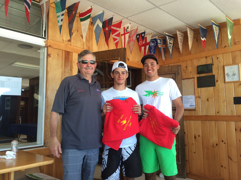 Sunday’s conditions were lighter with 5-8 out of the NNE for the final two races. Commette and Place came out strong again scoring another 1st place, but Gavin and Holly O’Hare broke that streak by winning the final race. Mintzias and Guaragna stayed consistent and claimed second overall, while Carol Cronin/Kim Couranz fought their way to a third place trophy.