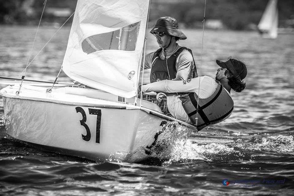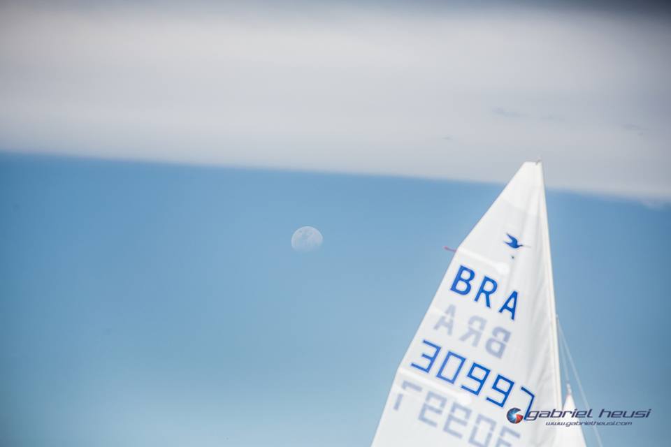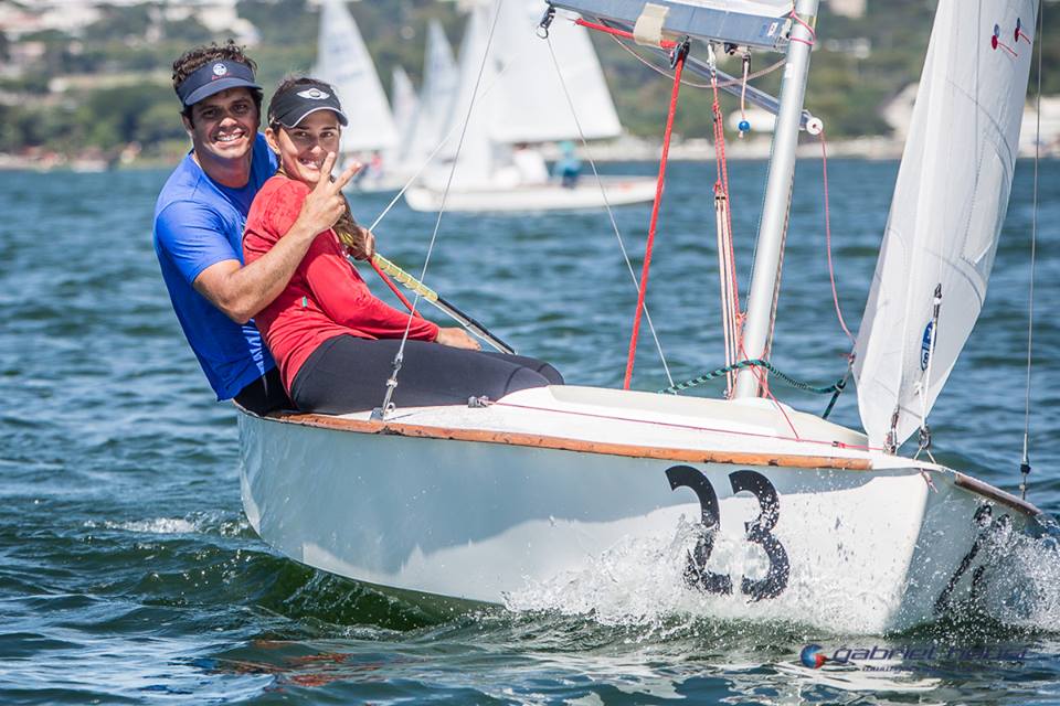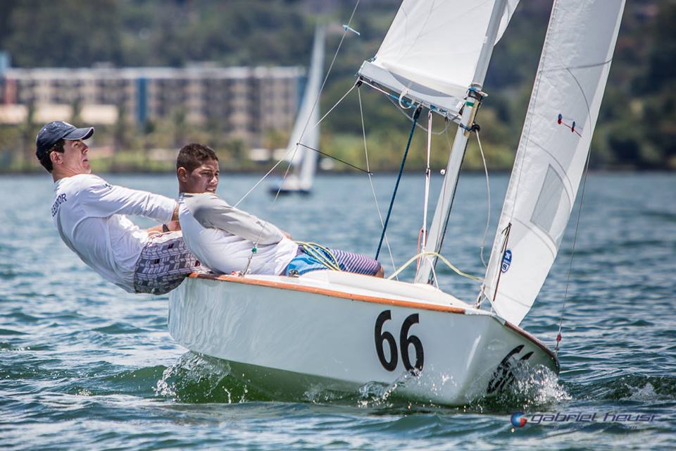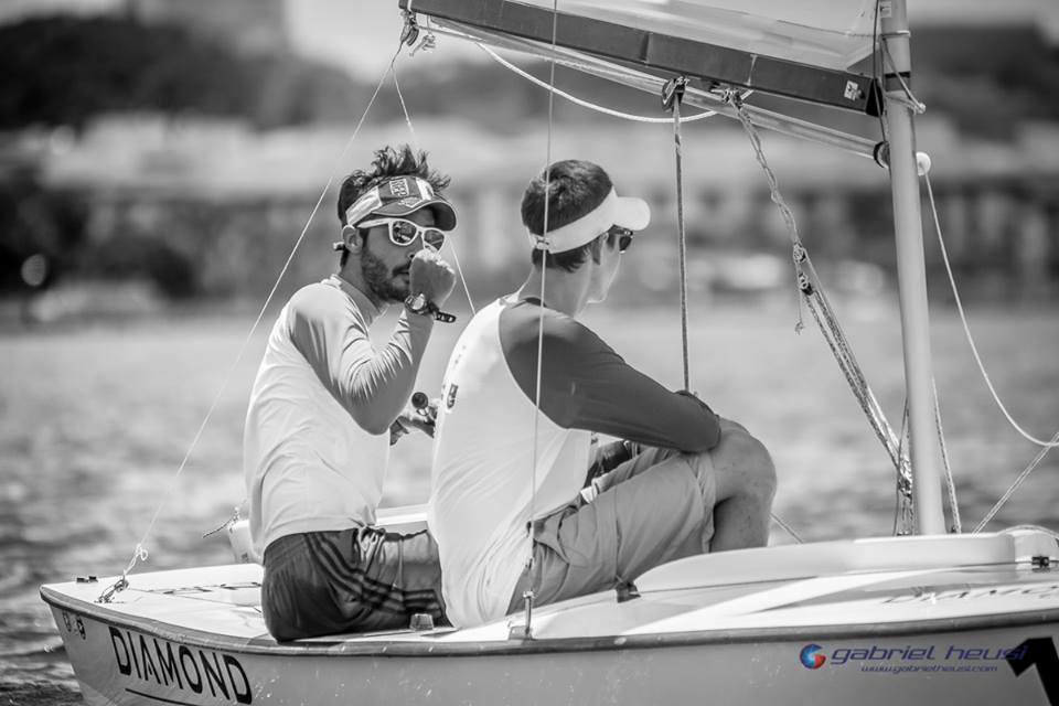 Na primeira prova do dia, com largada pouco antes das 11h, os então líderes da classificação geral Alexandre Paradeda / Lucas Aydos e Alexandre “Amiguinho” Tinoco / Alex Sandro, do Clube de Regatas Guanabara e Iate Clube de Icaraí, travaram um belo duelo até a linha de chegada. Nos últimos metros, Amiguinho em desvantagem optou por velejar mais folgado para se desvencilhar da marcação de Xandi. Mas a tática não surtiu efeito e ainda lhe custou uma posição. Resultado: Xandi foi segundo e Amiguinho quarto. Melhor para a dupla brasiliense Felipe Rondina / Luis Meireles, representante do Iate Clube de Brasília, que velejou livre para conquistar a primeira vitória no evento.