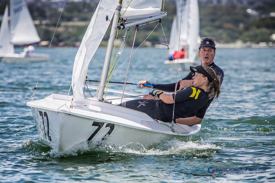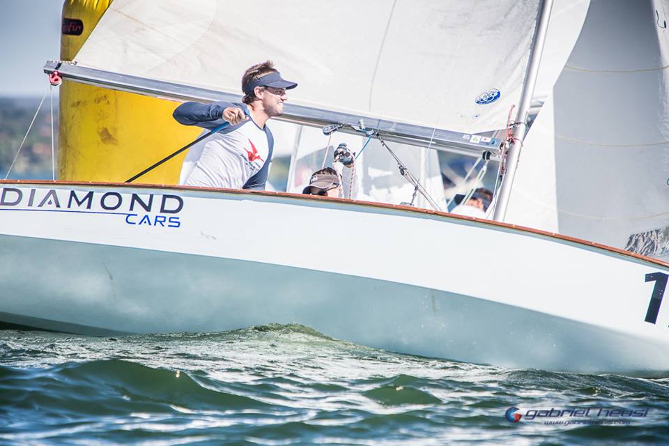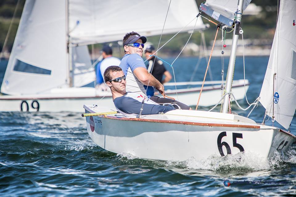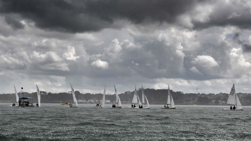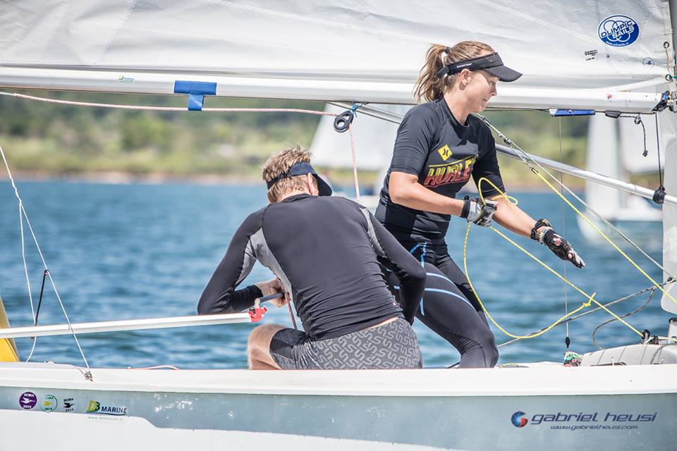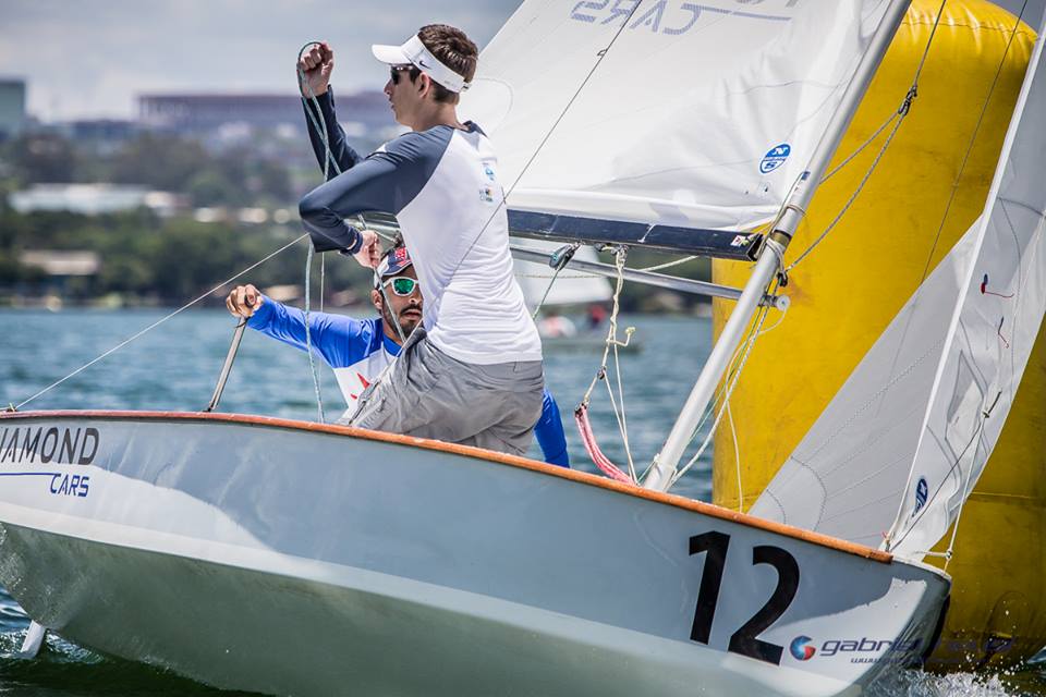 Na primeira prova do dia, com largada pouco antes das 11h, os então líderes da classificação geral Alexandre Paradeda / Lucas Aydos e Alexandre “Amiguinho” Tinoco / Alex Sandro, do Clube de Regatas Guanabara e Iate Clube de Icaraí, travaram um belo duelo até a linha de chegada. Nos últimos metros, Amiguinho em desvantagem optou por velejar mais folgado para se desvencilhar da marcação de Xandi. Mas a tática não surtiu efeito e ainda lhe custou uma posição. Resultado: Xandi foi segundo e Amiguinho quarto. Melhor para a dupla brasiliense Felipe Rondina / Luis Meireles, representante do Iate Clube de Brasília, que velejou livre para conquistar a primeira vitória no evento.