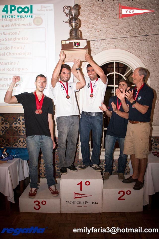 Rafael Gagliotti e Henrique Wisniewsky são campeões paulistas! Parabéns! O evento foi disputado em dois finais de semana no Yacht Club Paulista, na Guarapiranga, com direito a jantar e sorteio de prêmios no final. 40 barcos estiveram presentes, sendo 25 da capital, 5 de Ilhabela (sede do próximo Paulista em 2016), 5 de Santos e 5 do Rio de Janeiro!