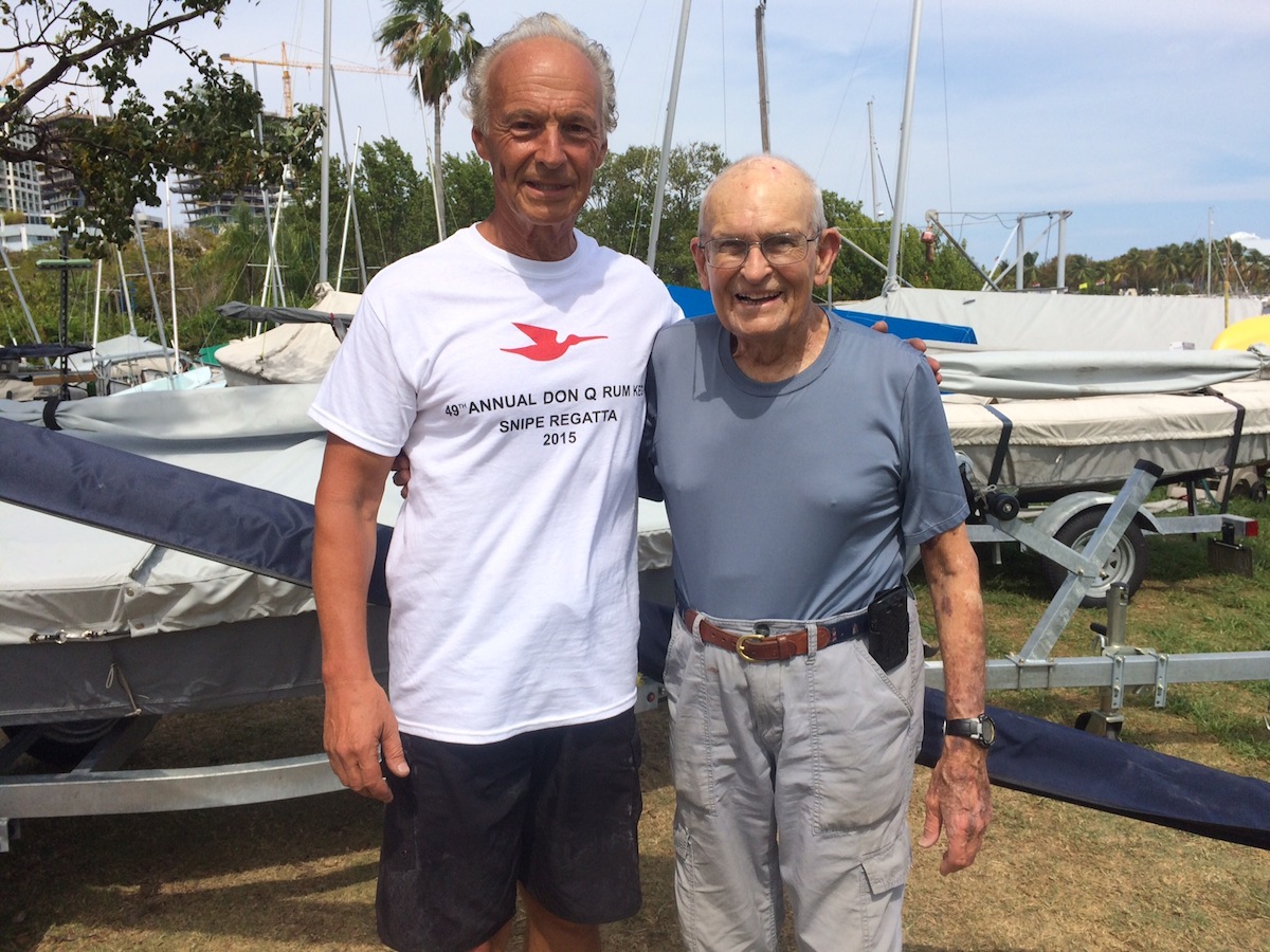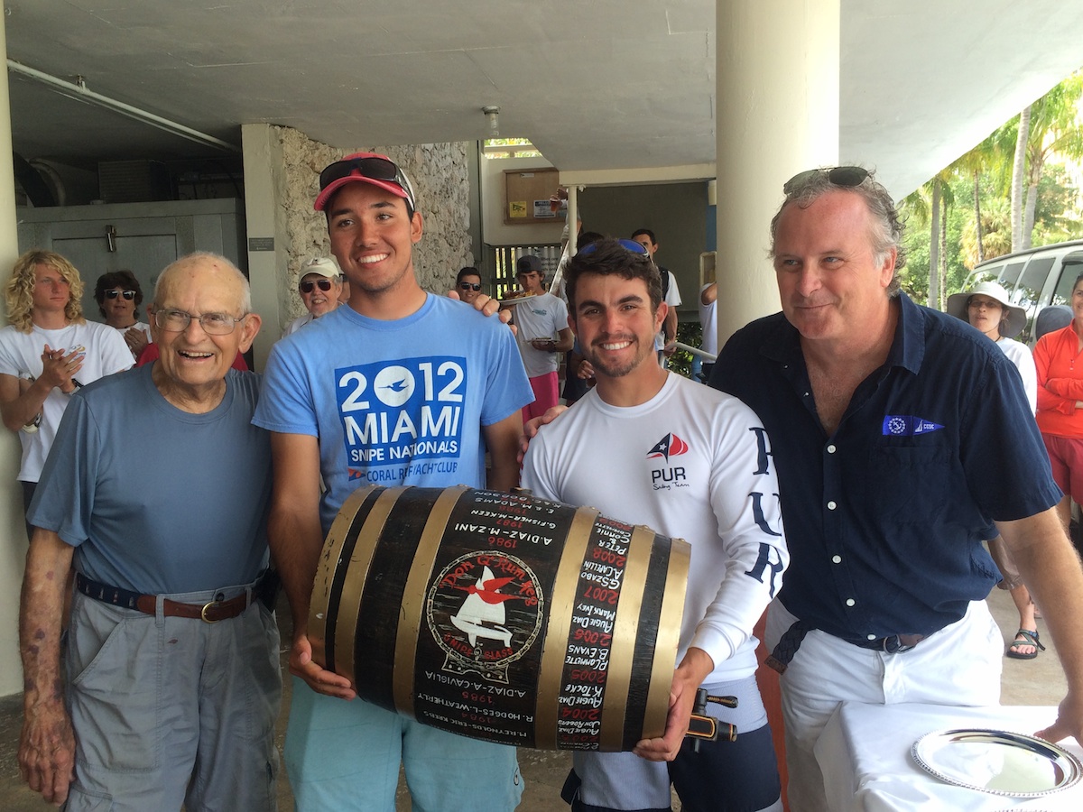 Miami, March 20-22, 2015. Regatta report by Nikki Bruno and full results (after 5 races) 1. Raul Rios & Andre Guaragna, 16 2. Augie Diaz & Kathleen Tocke, 20 3. Luis Soubie & Diego Lipszich, 30 4. Ernesto Rodriguez & Eduardo Mintzias, 32 5. Felipe Linares & Lior Lavie, 38 Snipe sailors representing eleven countries converged upon Biscayne Bay for the 2015 Don Q Rum regatta, hosted by Coconut Grove Sailing Club. Thirty-eight teams comprised of champions, veterans, and novices completed five races over three days of classic Miami sunshine, warm water, and cool breezes. On Friday the sea breeze didn't start to fill in until noon, so there was plenty of time for more bagels and coffee. Winds varied between 7-10 knots, mostly from the southeast. Finishing first in the first race was Luis Soubie and Diego Lipszyc of Argentina, followed by Raul Rios of Puerto Rico and local Andre Guaragna, and third saw locals Augie Diaz and Kathleen Tocke. Raul and Andre took over first place the next race, with Augie and Kathleen still right behind. Louis and Diego slipped back to eighth while locals Peter Commette and Jensen McTighe picked up the third. ...