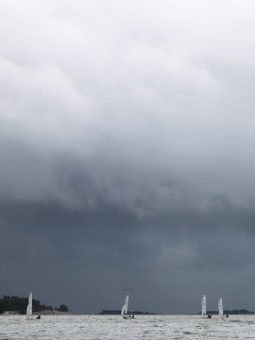 Final Snipe regatta of the season, the Helsinki Snipe Fleet 481 Open, was sailed in the trailing end of the tropical hurricane Henri. Gusts seemed to ease up in the morning, but accelerated high again during the day. So, unfortunately the race had to be abandoned after two races.