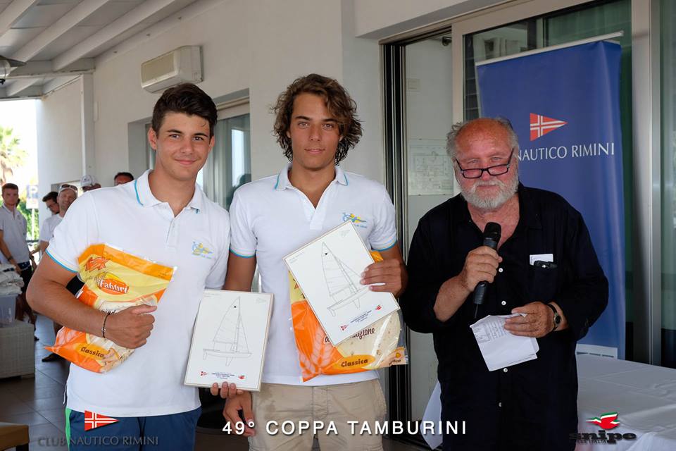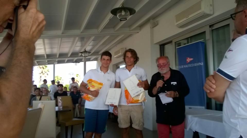 Rimini, July 7-8, 2015. Final results after 5 races (1 discard) 1. Michele Meotto & Alberto Cassandro, 5 2. Lapo Savorani & Federico Milone, 6 3. Marco Rochelli & Ilaria Rochelli, 11 Interview with the winners ... full results and photo gallery (courtesy of Roberto Baronicini) ...