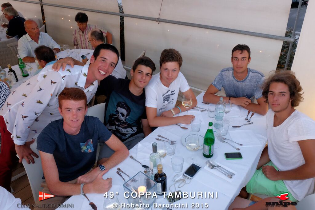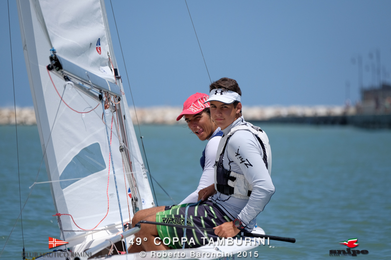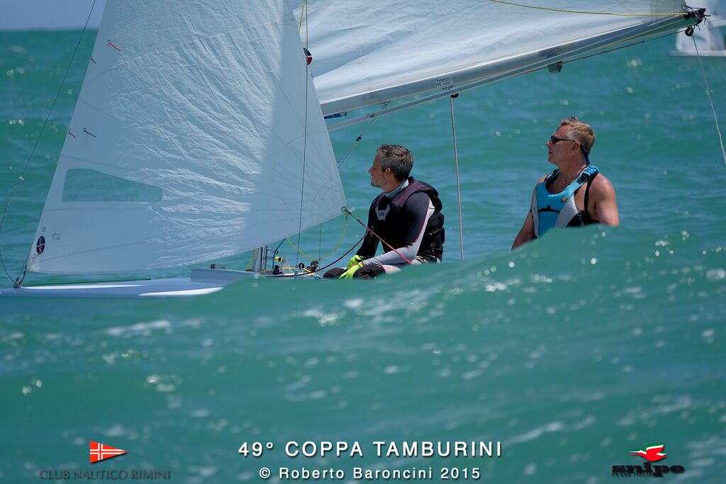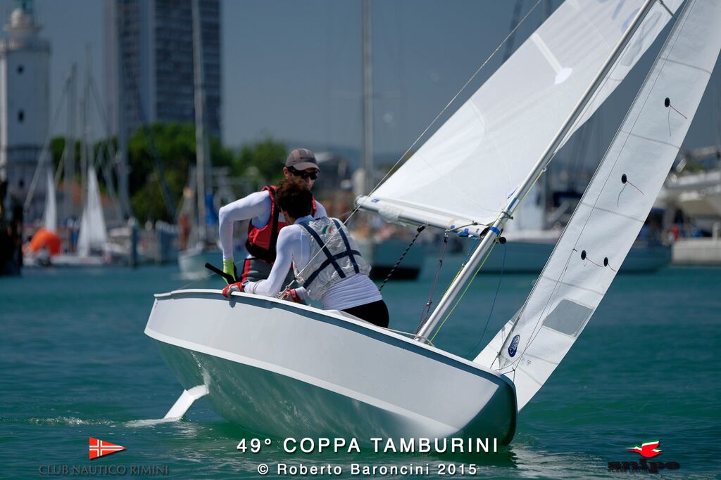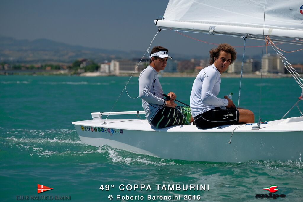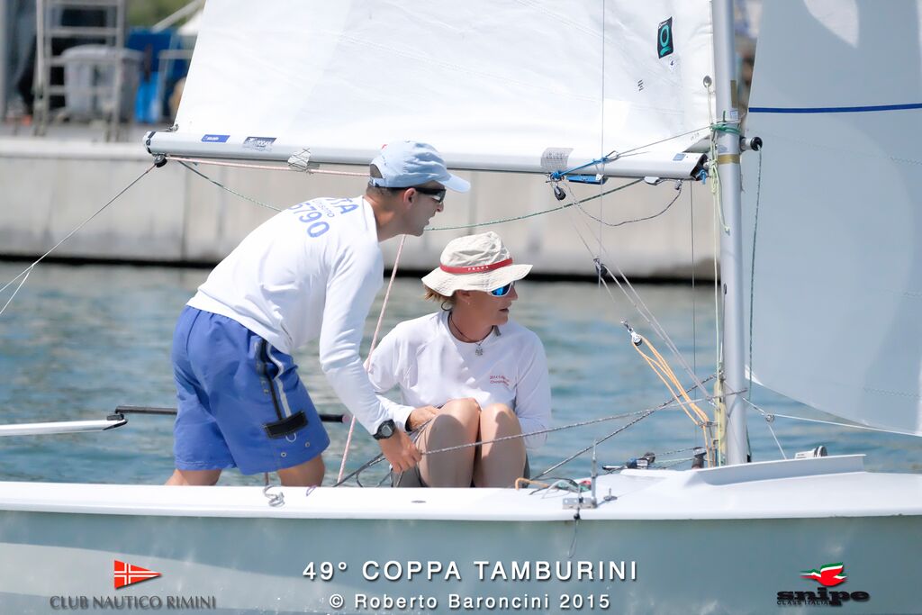 Rimini, July 9-12, 2015. Results and regatta report by Alberto Perdisa Brazilians Alexandre Tinoco and Nicholas Grael win the Open Championship. Pietro Fantoni and Marinella Gorgatto take the Italian title. Final results after 9 races (2 discards) 1. Alexandre Tinoco & Nicholas Grael, 14 2. Pietro Fantoni & Marinella Gorgatto, 22 3. Enrico Solerio & Paolo Lambertenghi, 22 4. Bart Janssen & Eva Jacobs, 33 5. Fabrizio Onofri & Jacopo Di Giuseppe, 40 6. Giampiero Poggi & Eugenia Vanni, 43 The seventy-third edition of the Snipe Italian Nationals, magnificently organized by the Club Nautico Rimini, also celebrated, in the best way, the forty-ninth edition of its the historic trophy "Coppa Tamburini." These are impressive numbers that few other sailing classes can match and that is the measure of the importance of the Snipe in Italy and worldwide. A boat that, like the older sister Star, seems timeless. The Italian Open Championship was preceded by the Junior Championship and the victory of Michele Meotto and Alberto Cassandro from Lignano, as well as excellent participation. This was a success for those who believe that the Snipe can give opportunities for young people, after (and during) the youth and Olympic classes, for racing at a low cost and high technical level. The regattas were the last selection trials for both juniors and seniors, qualifying the ten teams that will represent Italy in the World Championship to be held in September on the waters of Talamone. ...