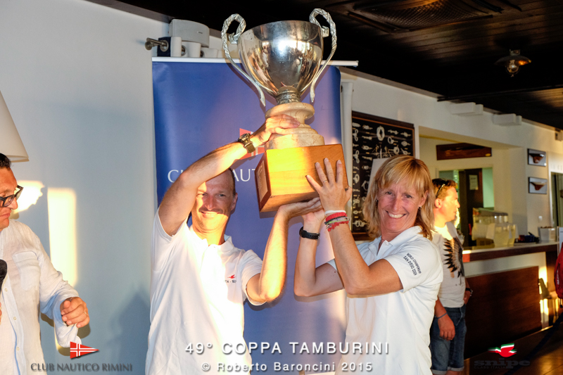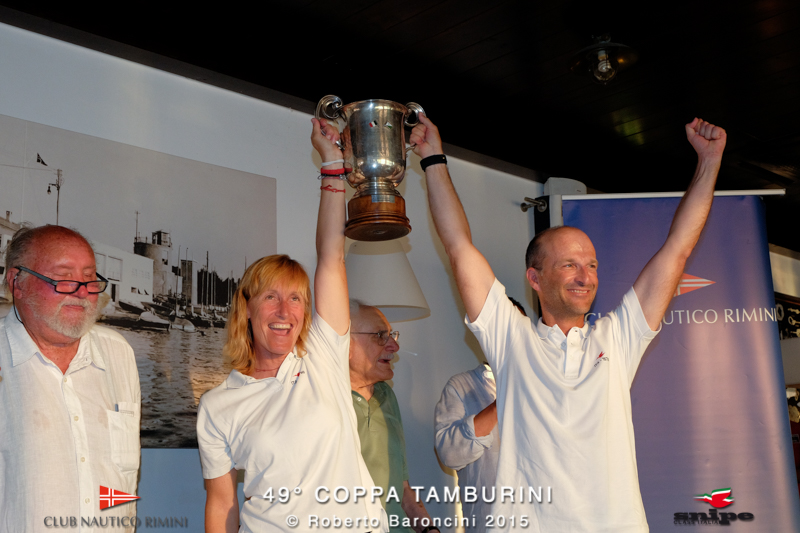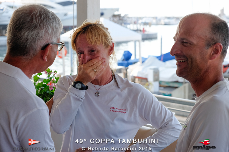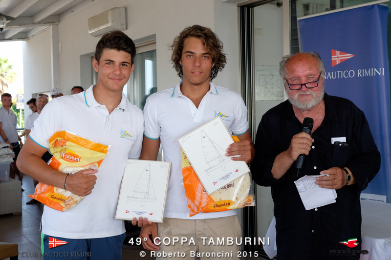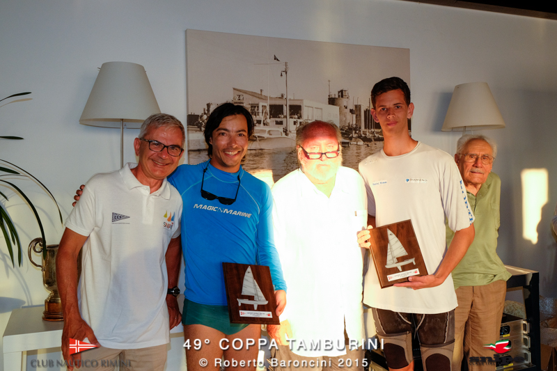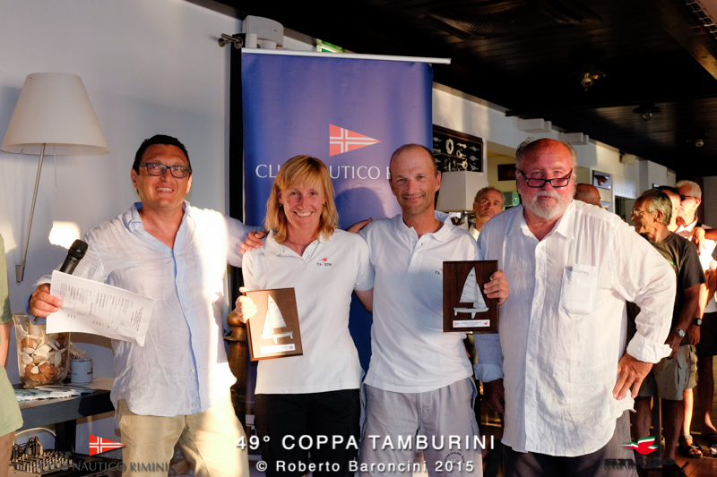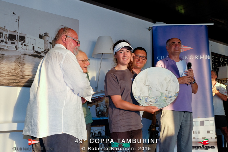 At the prize giving ceremony the Italian National Secretary Francesco Fontana, along with the Romagna Fleet Captain Alberto Perdisa, emphasized the extraordinary hospitality of the Club Nautico Rimini. The commodore of the Club Pietro Palloni hoped that the cup Tamburini is confirmed always as one of the main events of the Snipe in Italy, especially since next year will mark the fiftieth anniversary of the regatta. Giancarlo and Giovanni De Carolis, Snipe sailors, poets and artists, rewarded the winners of the championship Pietro and Marinella with a beautiful ceramic plate based on a design by Giovanni. Another special award, always a ceramic plate with a different subject each time, went to the young Stefania Padoan, only fifteen years old, who helmed the Snipe of his father Giorgio.