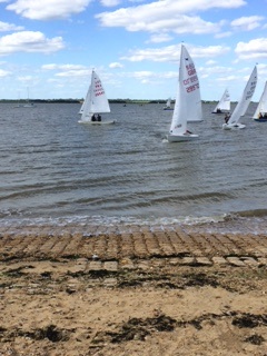 Race 1 introduced us all to the concept of Essex time (BST + 5 minutes) and only two boats noticed the flag sequence announcing the start in a howling wind that carried away the sound of the starting signals from the clubhouse. A bedraggled fleet of snipe crossed the start line over the course of the next 10 minutes with some exciting sailing in bright sunshine.