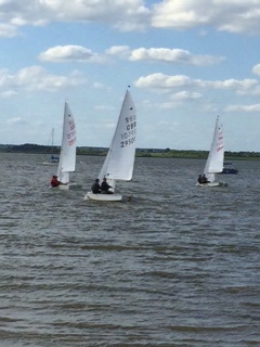 Sundays racing was a more sedate affair with nice sunshine and a pleasant but variable breeze. Overnight leaders Iain Marshall and Ewan Harris were unable to match Saturdays form in the lighter airs with Pete Wolstenhome and Mathew taking overall first place from Alan Williams and Liz Pike in second.