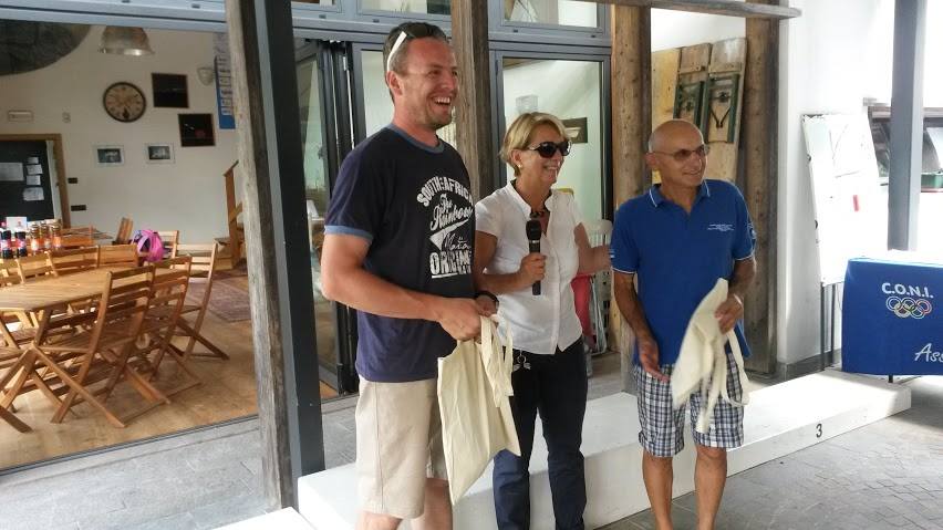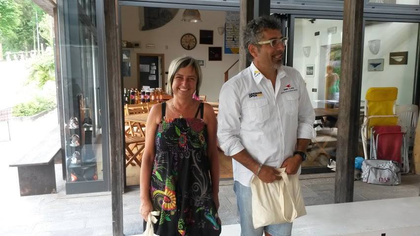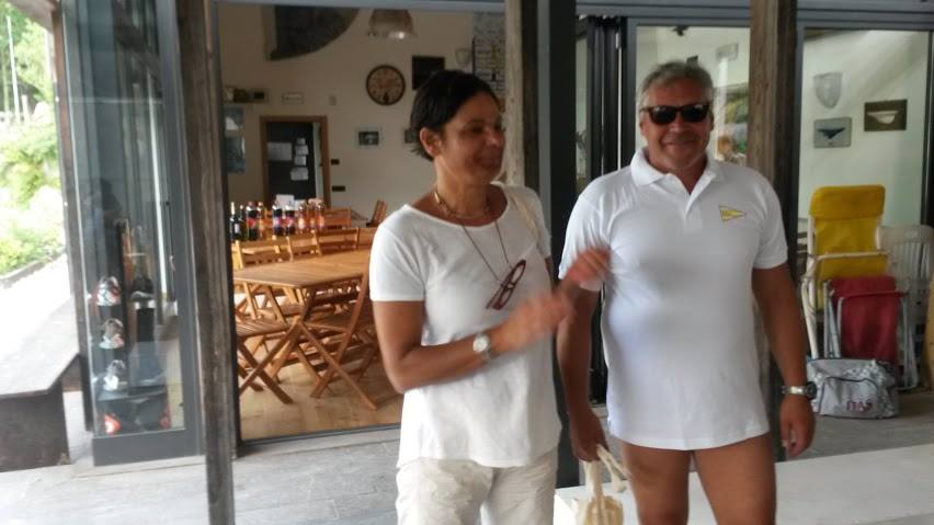 On Sunday morning, at 8.00, we celebrate the birthday of young Giorgia and eat a fantastic fruit cake with coffee. Then you come out and it is the real Ledro … the wind hard to relax but the jury starts a test unfortunate: the wind drops for all Venditti excluded stretching and rounding the mark in solitary fleet limps but then half astern the first stop while behind the wind is strong … the jury canceled and again. Two races with shifting wind see the young Bari check win quietly while Cigalotti and myself play the second arrival of the last race … tick Cigalotti … I’m not convinced, I try to bribe the judges, aid Cavallari even to bring the anchor of the ship jury but there is nothing to do. Emer husband and wife, comfortable with the shifting Wind place two respectable 4 ‘places.