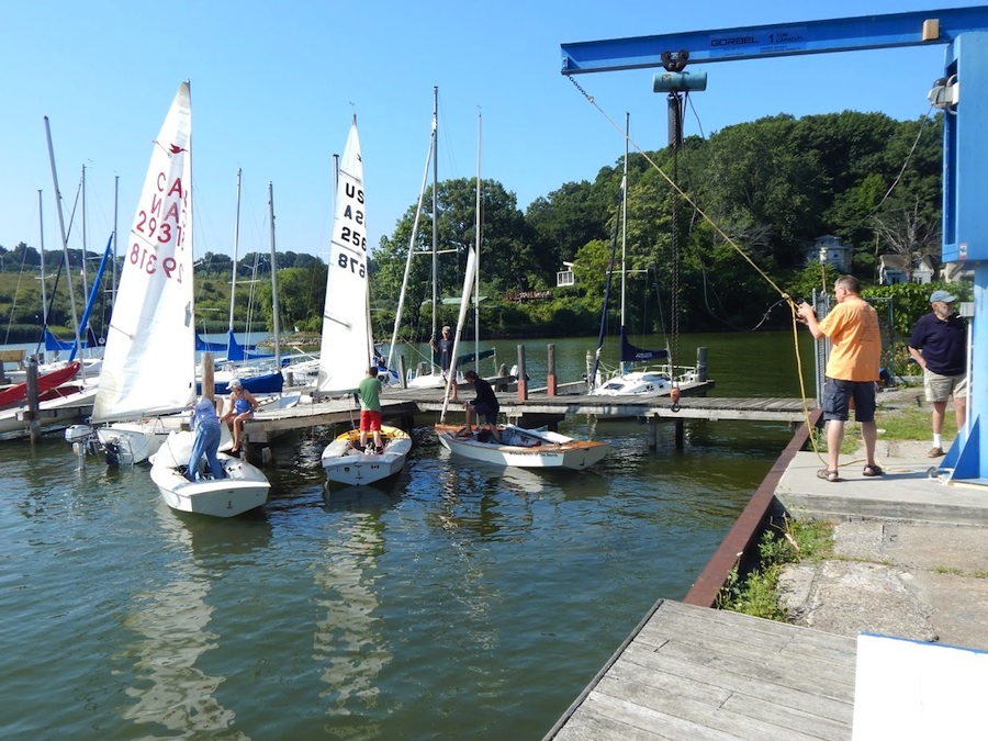 But wait! There’s more! Sailed concurrently was the District One Championship for the impressive Lake Mohawk trophy, and yes, the winner was the Bowers family–with Andy Klein & Grace Olsen in second–and Max Hetherington-Young (junior!) as skipper, with his dad Kevin as crew. The trophy came from Winchester BC for this regatta, and back to Winchester it goes. Along with it, we hope, go a lot of great memories of serious sailing and fun. Newport was pleased to host the D1 championship after many years hosting the final leg for the Retzhaupt Trophy, emblematic of the old D5.