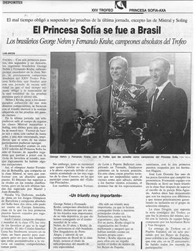 Nando Krahe Trophy is a championship in honor of Fernando Krahe, crew of George Nehm. They won important titles in their careers as sailors: Vice Snipe World champions in 1993 at Clube dos Jangadeiros and winners of the Trofeo Princesa Sofia in Palma.