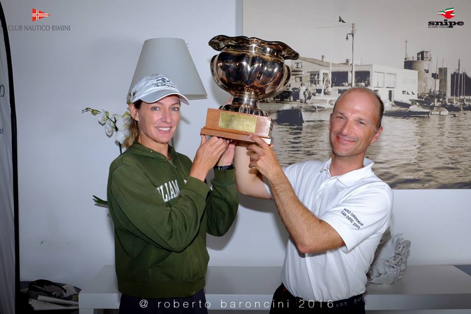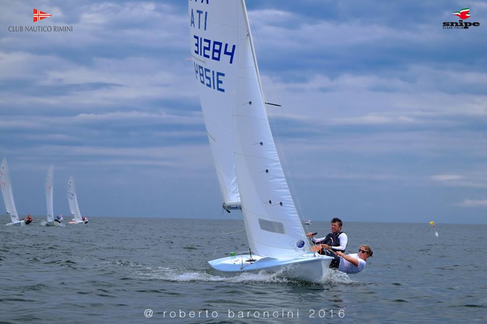 Rimini, June 10-12. Final results after 6 races (1 discard). Full results, Italian ranking, photos and article by Kathleen Tocke (Photo courtesy of Roberto Baroncini) 1. Enrico Michel & Antonia Contin, 13 2. Pietro Fantoni & Kathleen Tocke, 15 3. Stefano Longhi & Eleonora Zuzic, 18 4. Paolo Lambertenghi & Leonardo Franzin, 20 5. Francesco Scarselli & Marco Rinaldi, 24 6. Francesco Rossi & Gianfranco Filippini, 24 Lessons from Six Years of Piada By Kathleen Tocke 2016 marked my sixth Piada Trophy, the first being in Cervia in 2008. It is one of my favorite regattas of the year. Having organized international regattas myself, it is evident how much thought, time, and passion goes into the Piada Trophy. Every year it has a very definable spirt – fun with the highest quality of racing in beautiful venues with beautiful people, warm friendly Italians who share a passion for the Snipe and the Snipe Class. It is a tradition, an institution created by the indomitable Alberto Perdisa. 1. You know you are in Italy when .... races start at noon and only in sunshine. ...