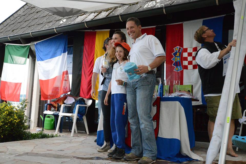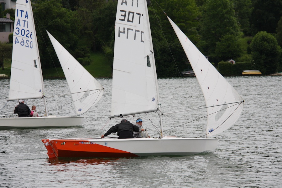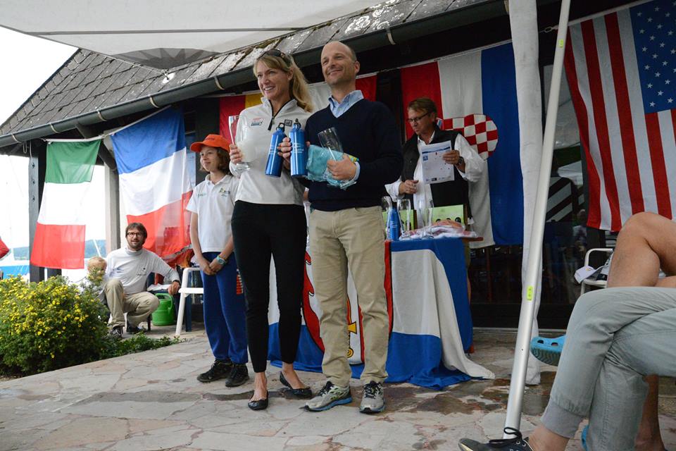 Regatta winners from Trieste, Stefano Longhi and junior crew Eleonora Zuzic sailed an excellent event, making few mistakes, going for speed versus angle, and were ever so patient with the wind. Fighting with Longhi/Zuzic were the Italian/American team of Fantoni & Tocke and the husband/wife team from Venice, Alessandro Rodati and Barbara Bonini. At any point in a race, it was difficult to tell who would win. That’s lake sailing!