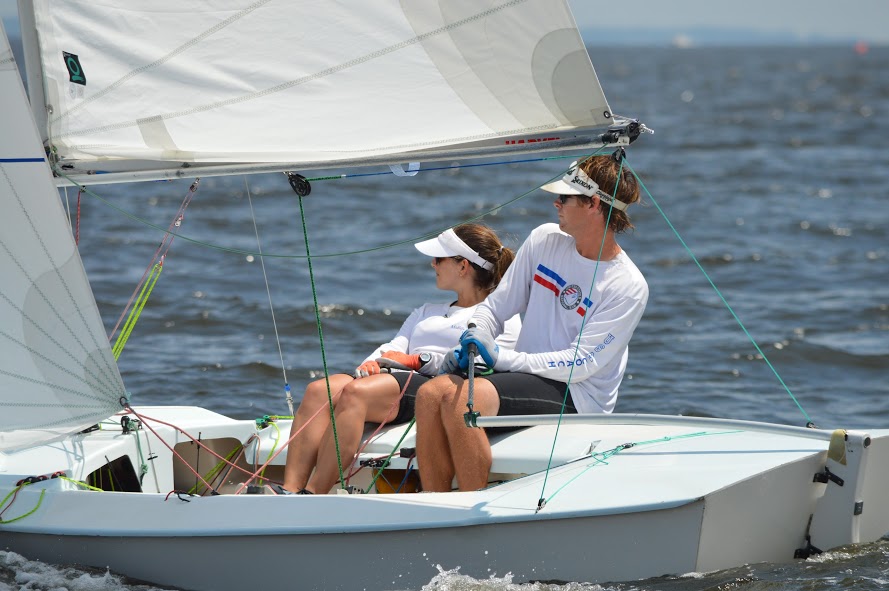 Graham Landy (2014-15 College Sailor of the Year) with crew Chris Klevan (USCGA Assistant Coach), both newcomers to the Snipe, came out strong on the first day in lighter 5-10 knot choppy conditions, winning 4 of the 5 races. Big breeze and rollers the second day (15-20 knot) gave Snipe veteran Arthur Blodgett with St. Mary’s alum Marissa Golison the opportunity to challenge. Despite straight bullets in the big breeze, Landy/Klevans held on to win the regatta by one point. The battle for third was between SSA’s Christian Filter/Jessica Bennett and Jensen McTighe from Lauderdale Yacht Club who picked up local crew Lydia McPherson-Shambarger, St. Mary’s sailor and SSA Summer Program’s Head Coach. Jensen’s big wave experience helped put him over the top with a solid 2-3-6 on Sunday to solidify third in the overall.