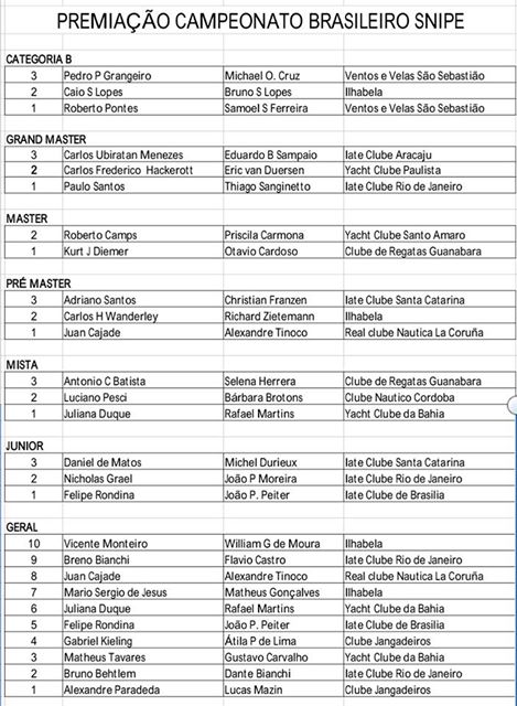 Ilhabela, January 27, 2017. Final results after 9 races (2 discards)