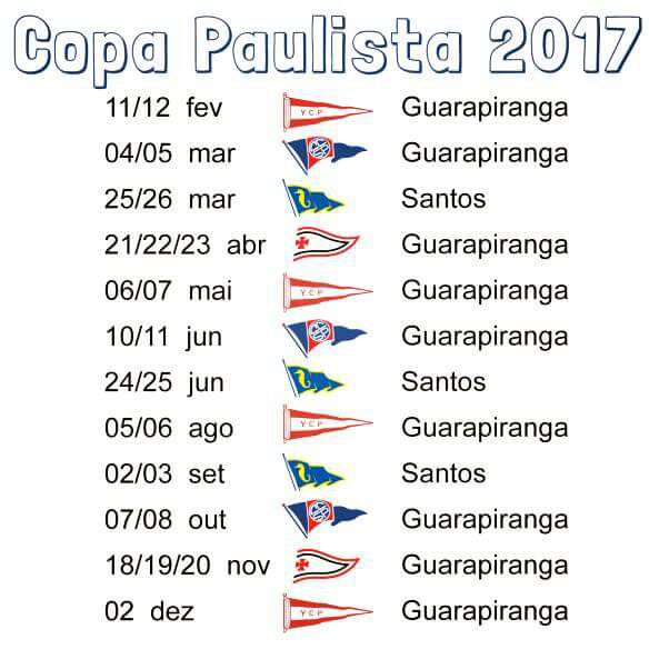Last weekend we had the first of twelve rounds this year of what we call “COPA PAULISTA 2017” in the Guarapiranga Dam at Yacht Club Paulista (YCP) – attached schedule below.