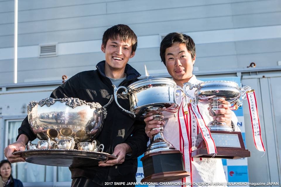 The 70th Snipe Japanese National Championships finished with 3 races on a beautiful sunny day. First place Rei Nagamatsu and Tatsuke Jingu, second Yasushi Kondo and Keish Suzuki, third Koji Kamiya and Yohei Koso, fourth Luis Soubie and Diego Lipszyc, fifth Junichiro Shiraishi and Shinsei Ueda.