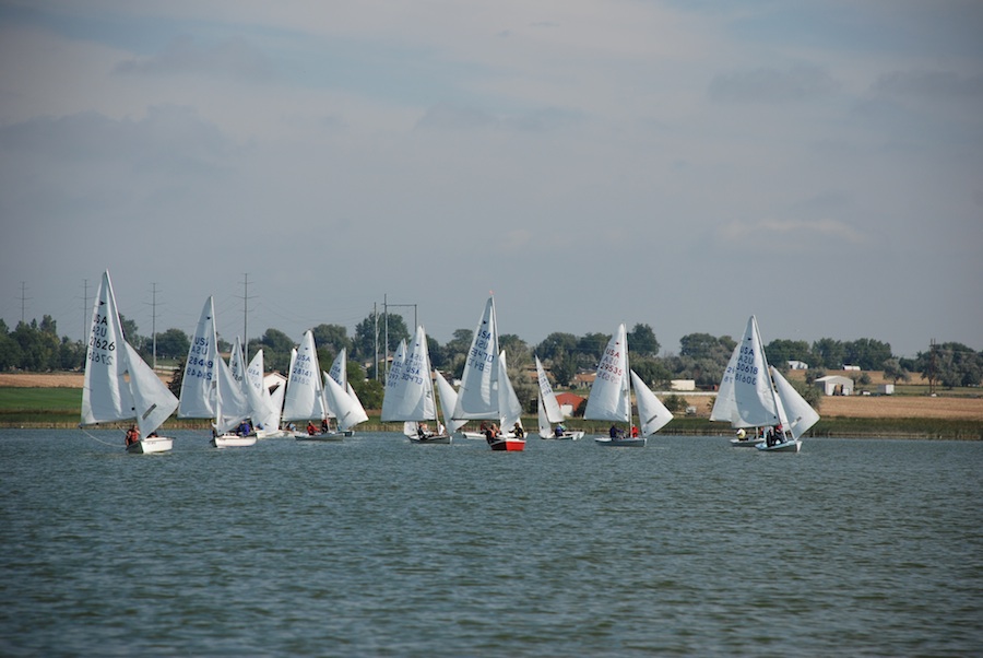 Nineteen boats battled in the typical Colorado summer winds, which were mostly light and variable on both days. In the second race the wind dropped so far that half the fleet ended up having to be scored TLE (time limit expired).