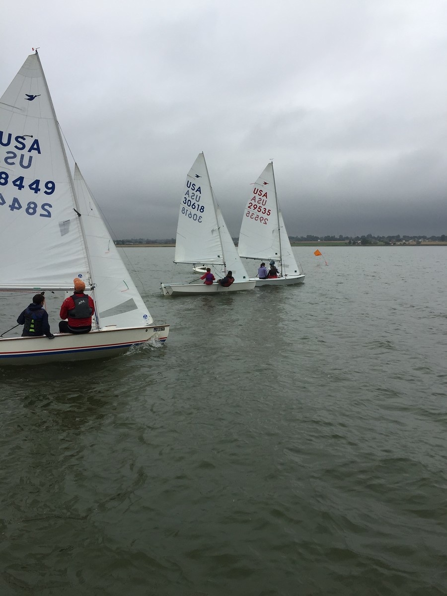 Three junior races were held on Saturday morning in more favorable conditions. Nikolai Woeger and his crew Marcus Ward took first place with three bullets! They were followed by Lucia Thomas (an exchange student from Germany) and her crew Doug McKnight in second place. Stuart McKnight came in third with novice crew Christian Peterson. Christian had never before been on a sailboat in his life!