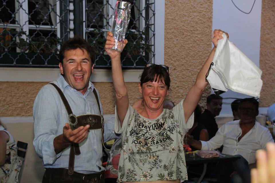 Saturday a warm and sunny day welcomed sailors. The wind unfortunately missed … However, the fun wasn’t missed for sailors. At Obertrum Am See, after a visit to the Trumer brewery, thirsty sailors could drink from a fountain from which the tasty beer flowed directly. Then a typical Austrian cuisine was served, followed by a tasting of special beers with the explanations of a sommelier.