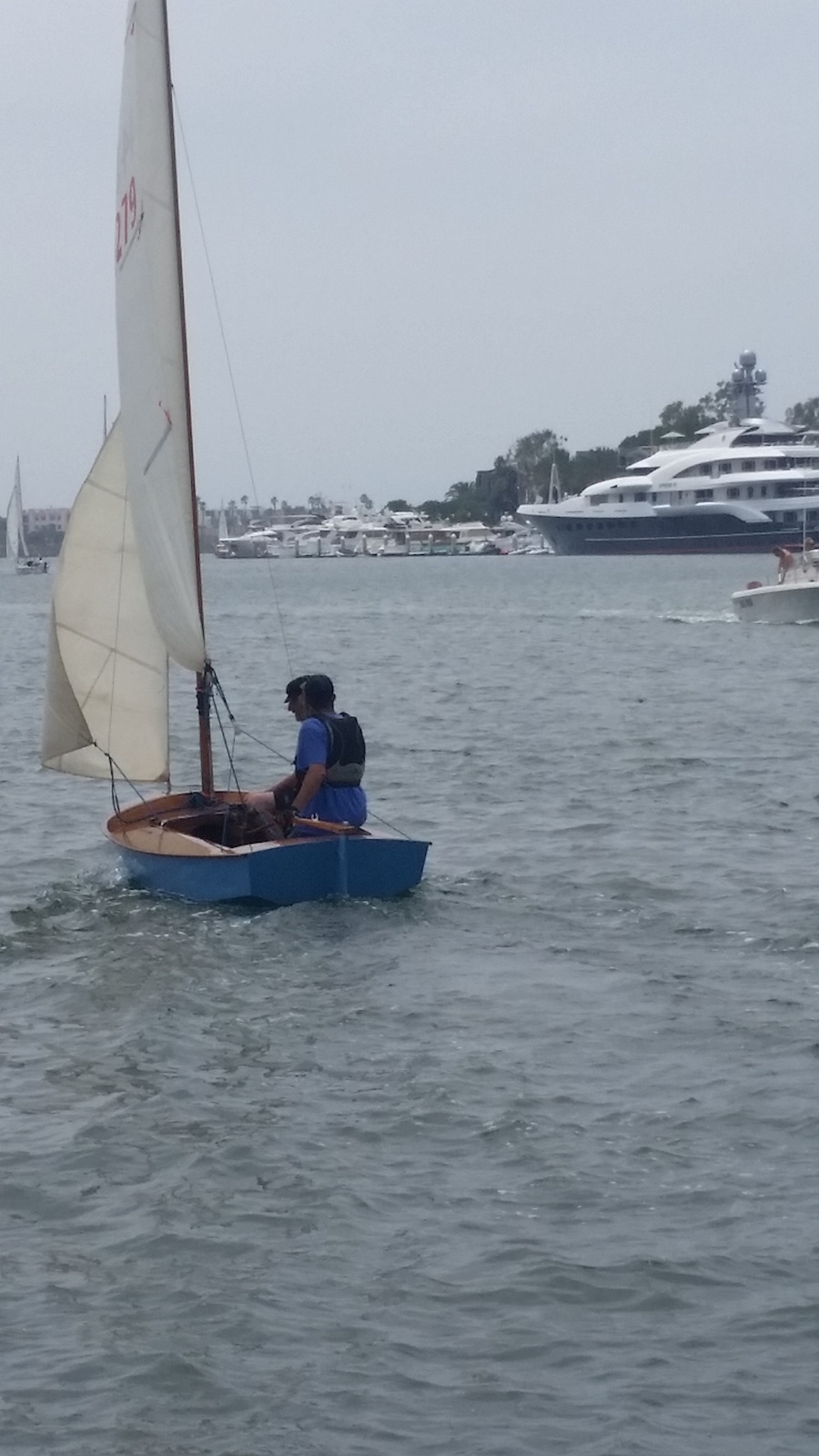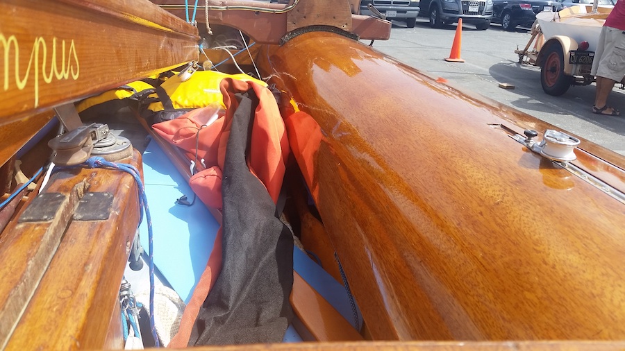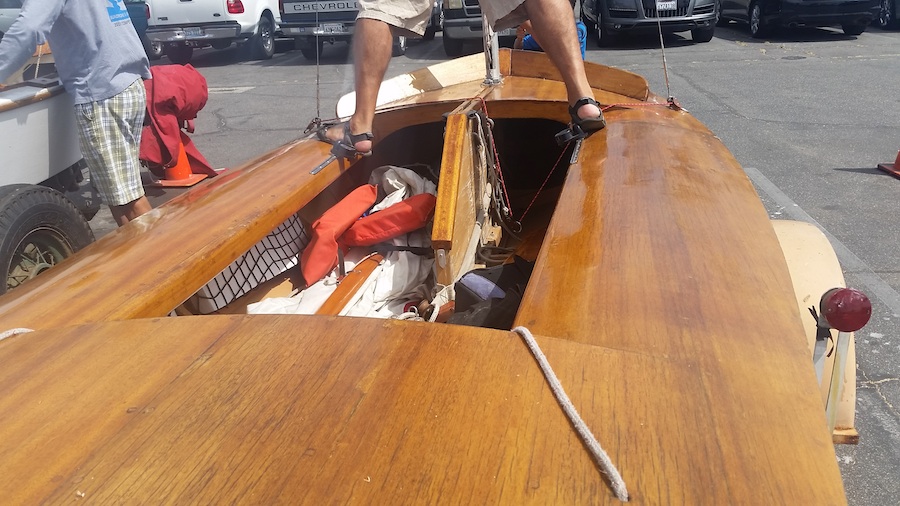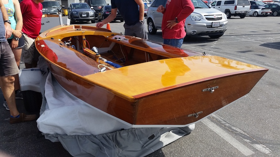 Brad Thompson brought Snipe 8569 Make Way out for display, restored by his father Jerry Thompson; her perfectly finished topsides and deck gleamed once again under the Southern California sky. There was just enough time to check out all the boats, exchange ideas and stories before the boats had to head for the hoist and race start.