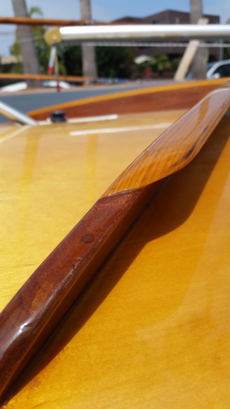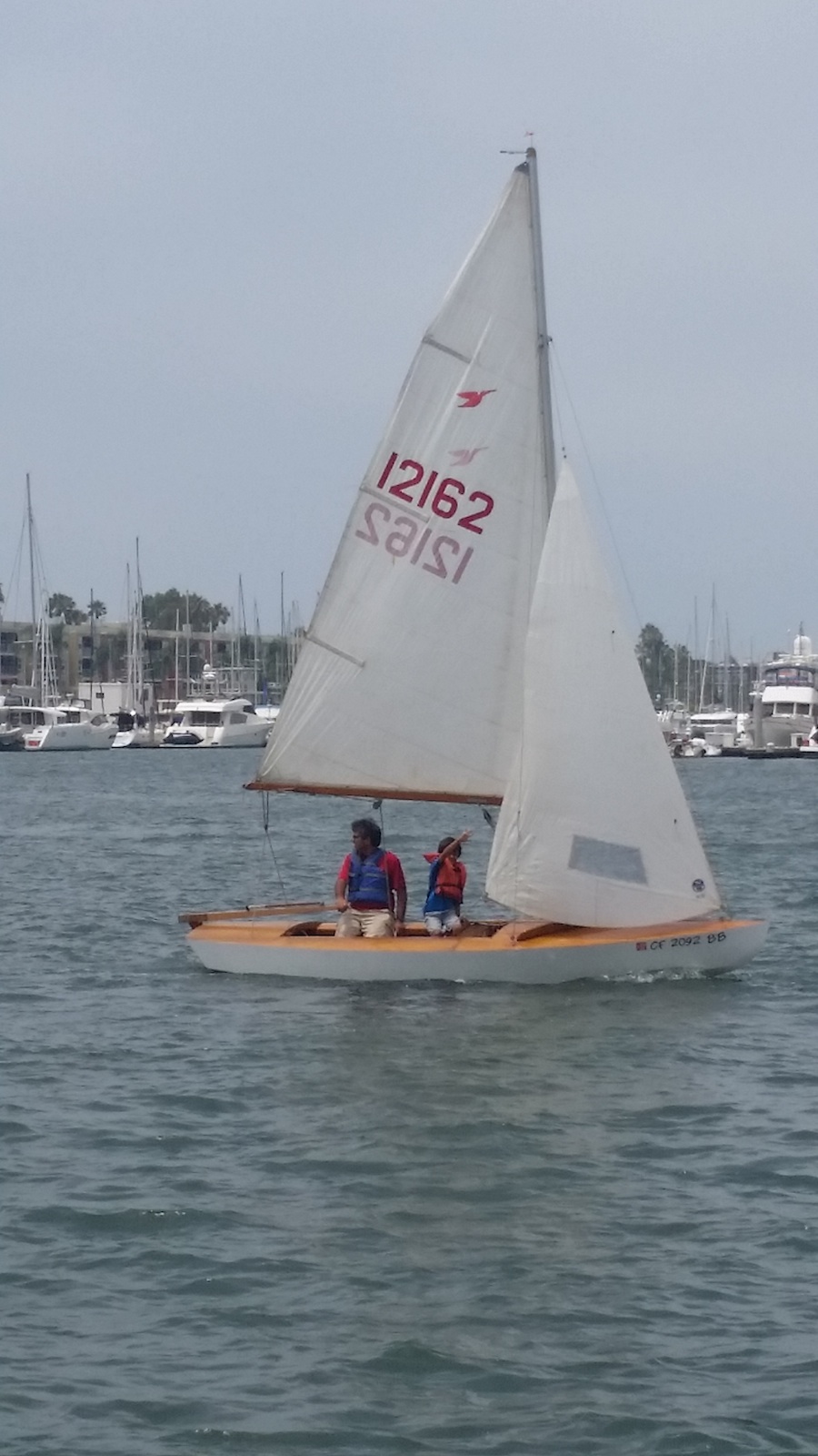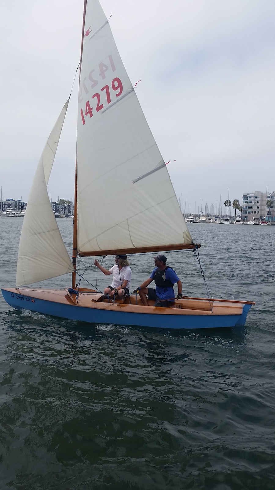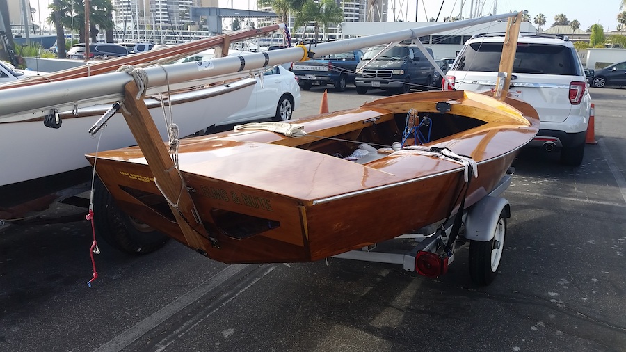 Photo 12: Snipe #16228 “Elms & Nute”. Great to see it in action again. The prototype (only remaining one of two built) for all Chubasco/McLaughlin/Eclipse Snipes that came afterward. The other one (#16103 “White Trash”, now demolished after unprotected weather exposure) won the 1966 Snipe US Nationals, the last wooden Snipe to win the Nationals. So happy that new owner Scott McKenney was able to finish up the restoration details and get this Snipe back sailing during informal “fun” racing with other Classic Snipes, held during the 2017 “west coast” Classic Snipe Rally at Marina Del Rey, California