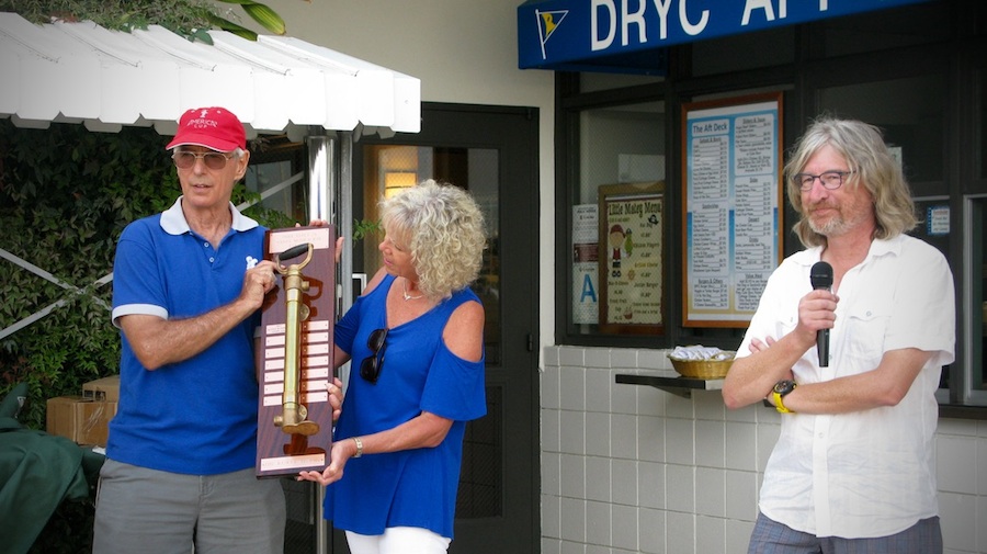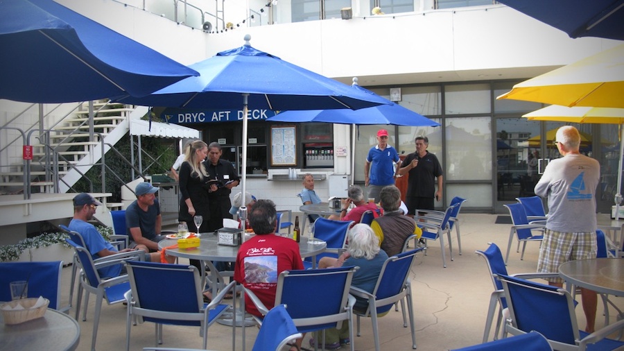 Trophy awards and celebration to the energized group was initiated by the address of DRYC’s Vice Commodore Mark Gross., followed by DRYC PRO and Race Chair Andy Kopetzky. Besides the award of the perpetual Snipe Fleet 24 Wooden Dinghy Race Trophy, the fleet also awarded for the first time the Snipe Fleet 24 Rescue Trophy, which was awarded to Gigi Barbes for taking charge of Snipe #3244. The Rescue Trophy was introduced last year to award wooden Snipe rescue, wooden boat rescue in general or good deeds to the wooden boat community.
