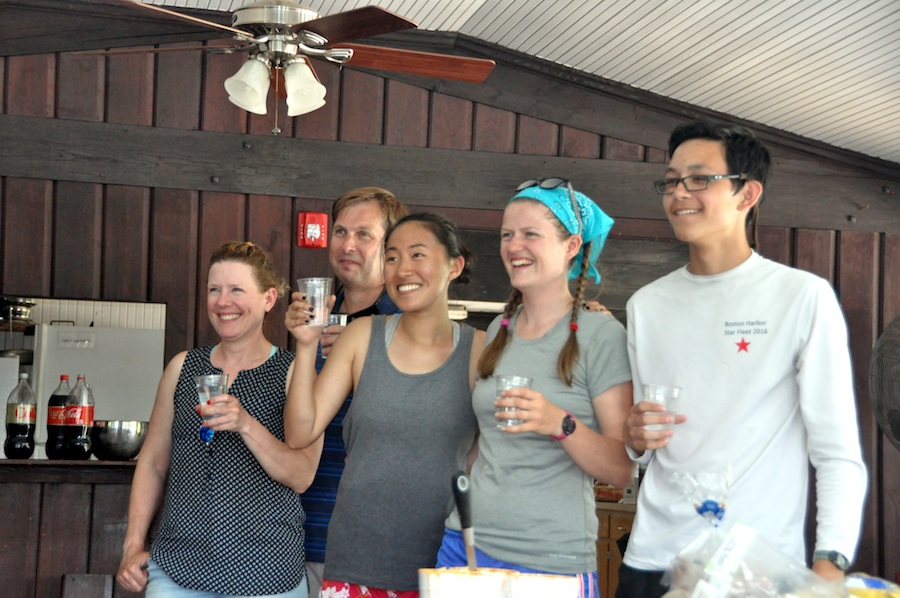 Jim Bowers and Julia Rabin recovered from an OCS and capsize on the first of 8 races to eek out the most consistent and top-dating team of Cam Fraser and Liz Glavinski by 1 point over a weekend of gorgeous westerlies on the Mystic Lake outside Boston. Except for Jim and Julia’s double boo-boo to start the weekend, the two teams finished no more than 3 boats apart all weekend. Top spouse team of Jock and Myrna MacRae took third while the daughter-mother Katie and Sarah Levinson broke the tie for fourth with current Tufts sailing team members Nick Giacobbe and Laura Dienemann.