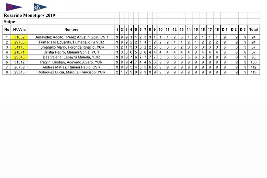 Rosario, Argentina, November 24, 2019. Results after 18 races (3 discards):