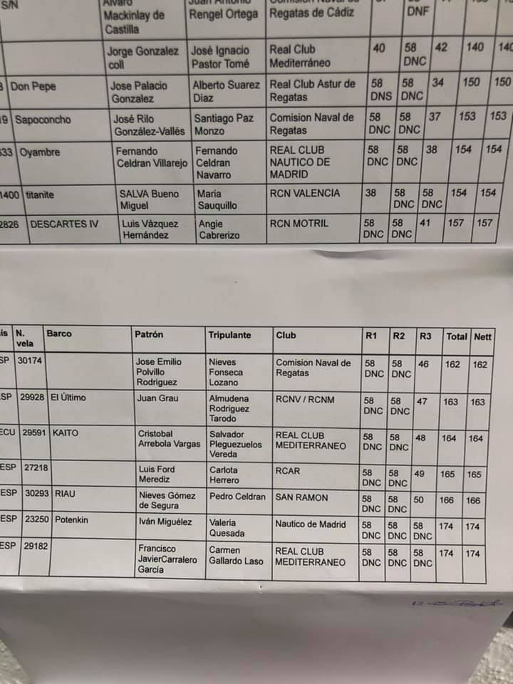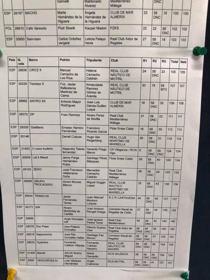 Marbella, Spain, May 26, 2019. Final results after 3 races: