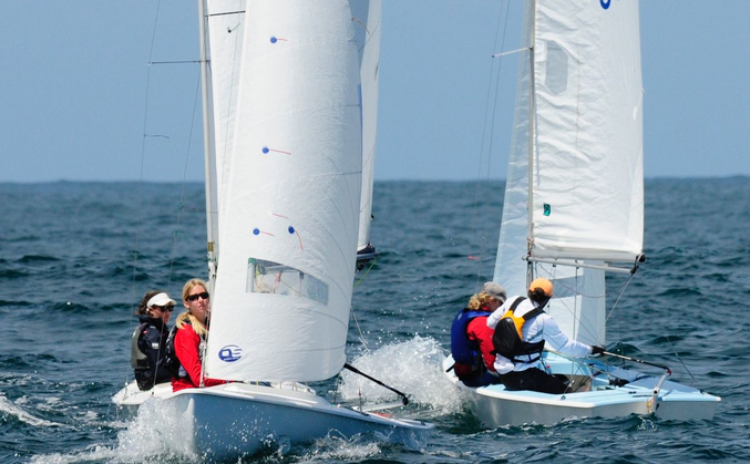 Enrique Quintero and crew Kathleen Tocke were able to finish first overall, staying in the top three of the fleet through the entire weekend. The real competition was between the 2nd, 3rd, and 4th place sailors that kept trading positions. Peter Commette and Allie Shand, George Szabo and Dianna Waterbury, and Doug Hart and Diego Escobar might as well have been in a three-way match race through all seven races.
